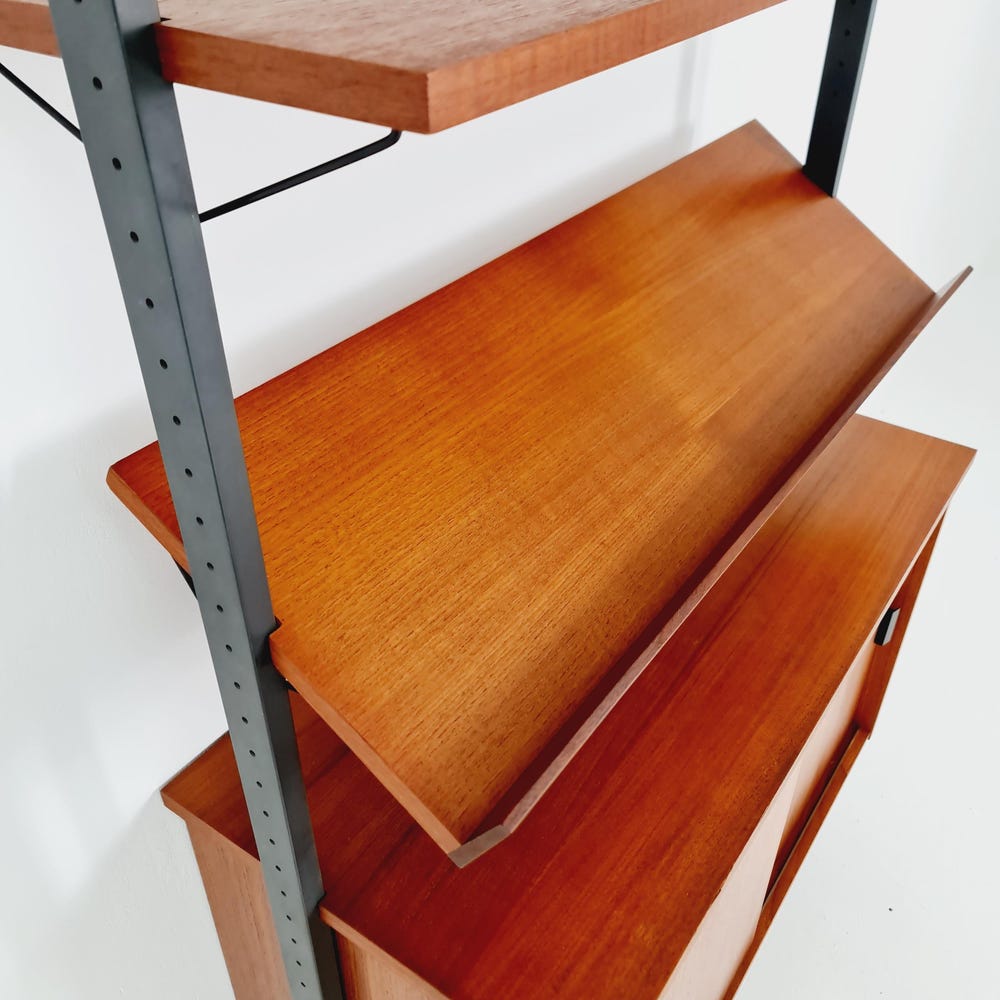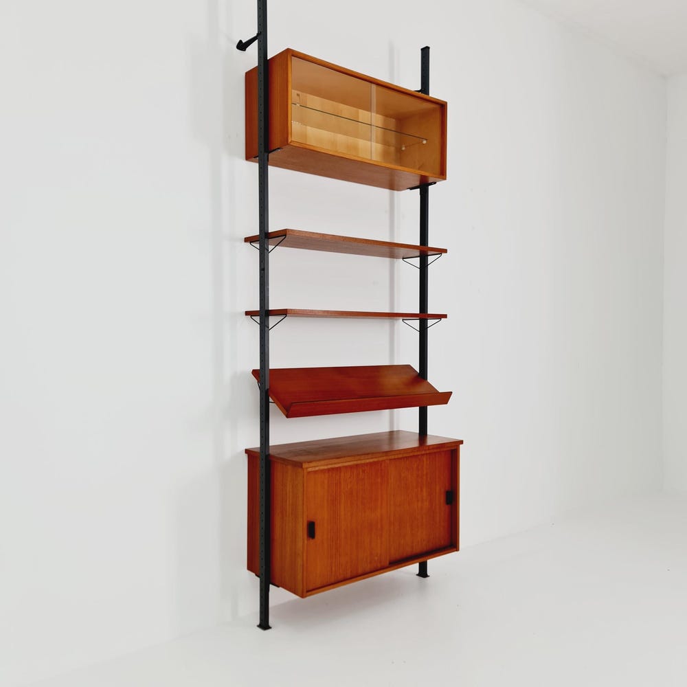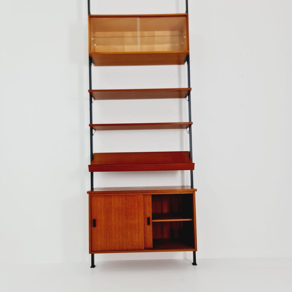 Mid century String shelf system teak & metal by Olof Pira Sweden, 1950swith Magazine shelf and showcaseMeasurements:Height: 252 cmWidth: 93 cmDepth: 30.40 cm Please inquiry for prices to your country before buying. A wooden crate may be used for intercontinental shipments for maximum protection. Witin Germany: >> Delivery is possible within 50km from my workshop […]