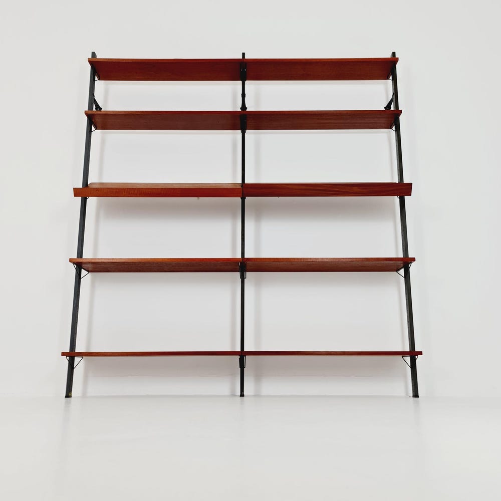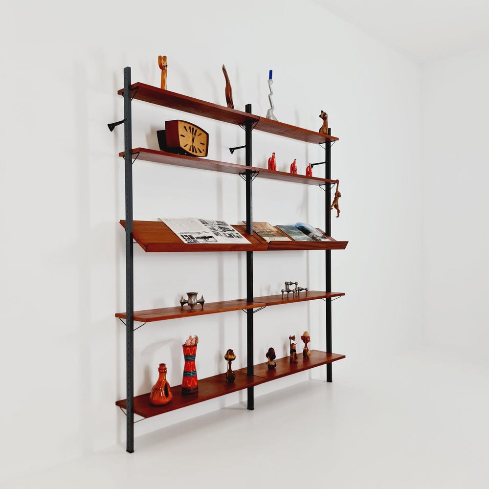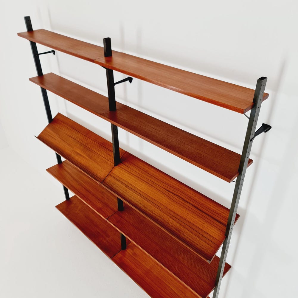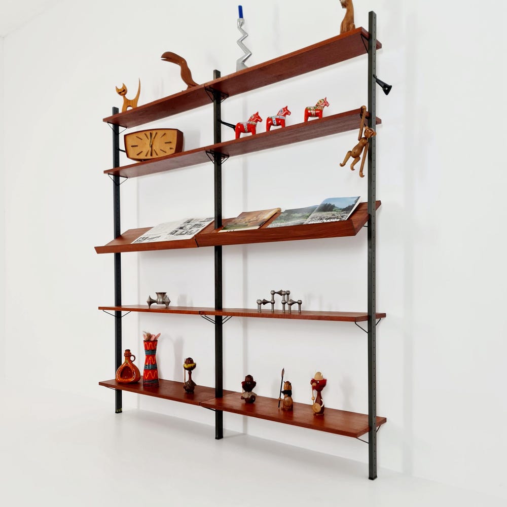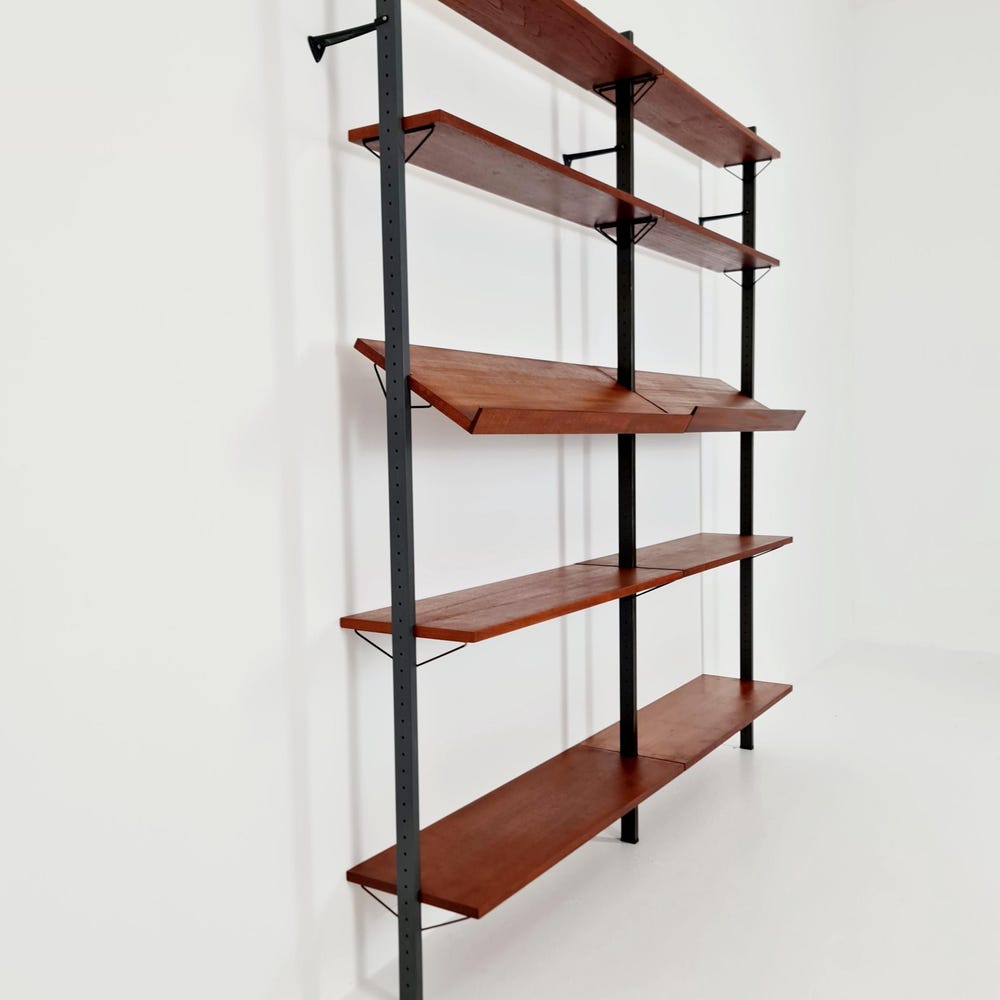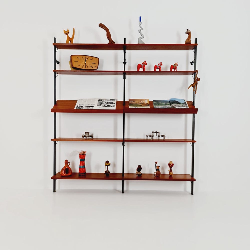 Mid century String shelf system teak & metal by Olof Pira Sweden, 1950s