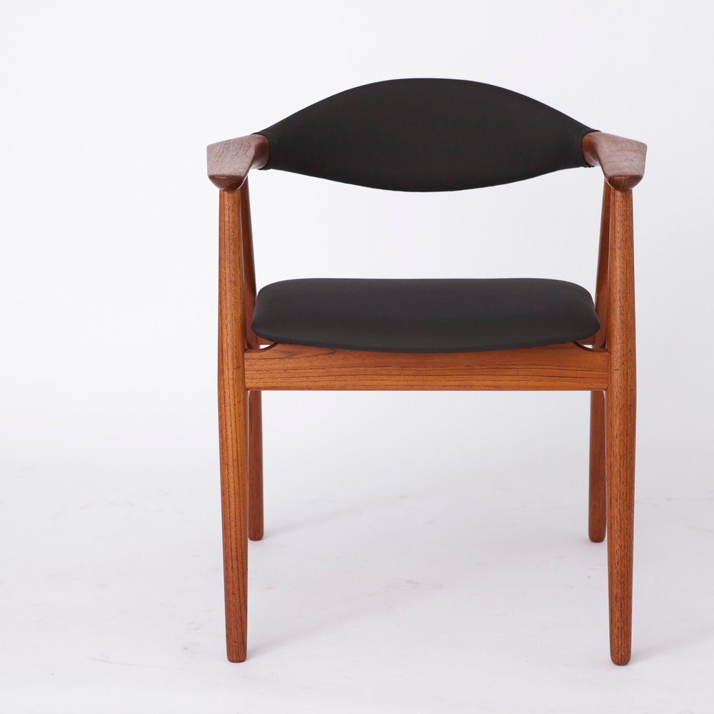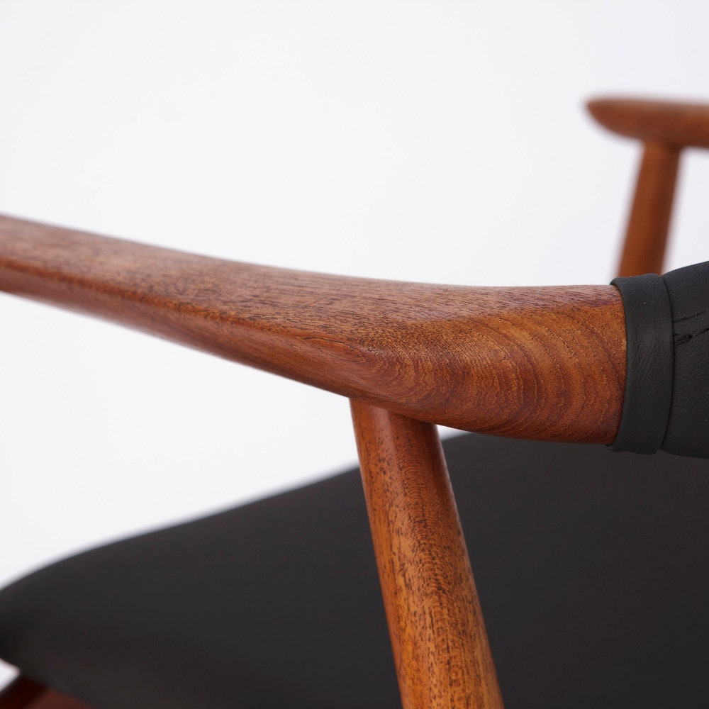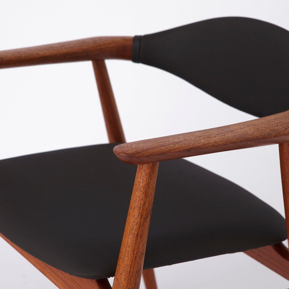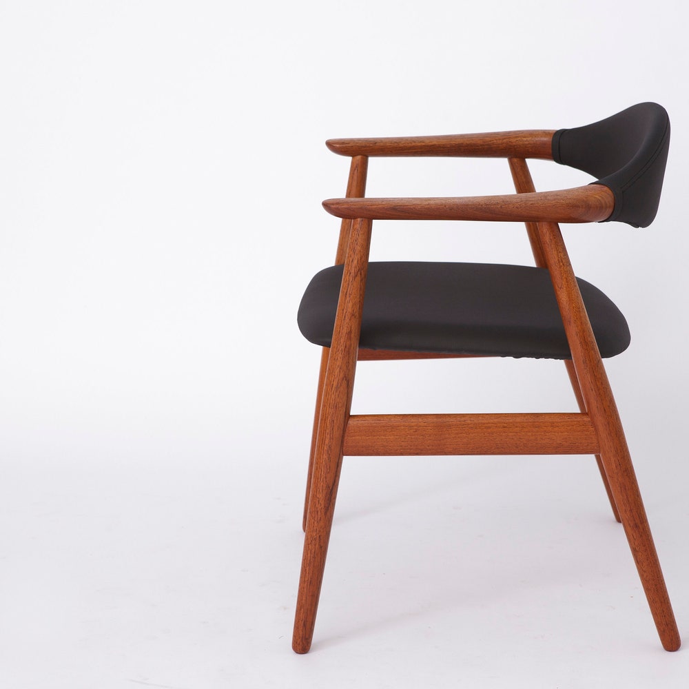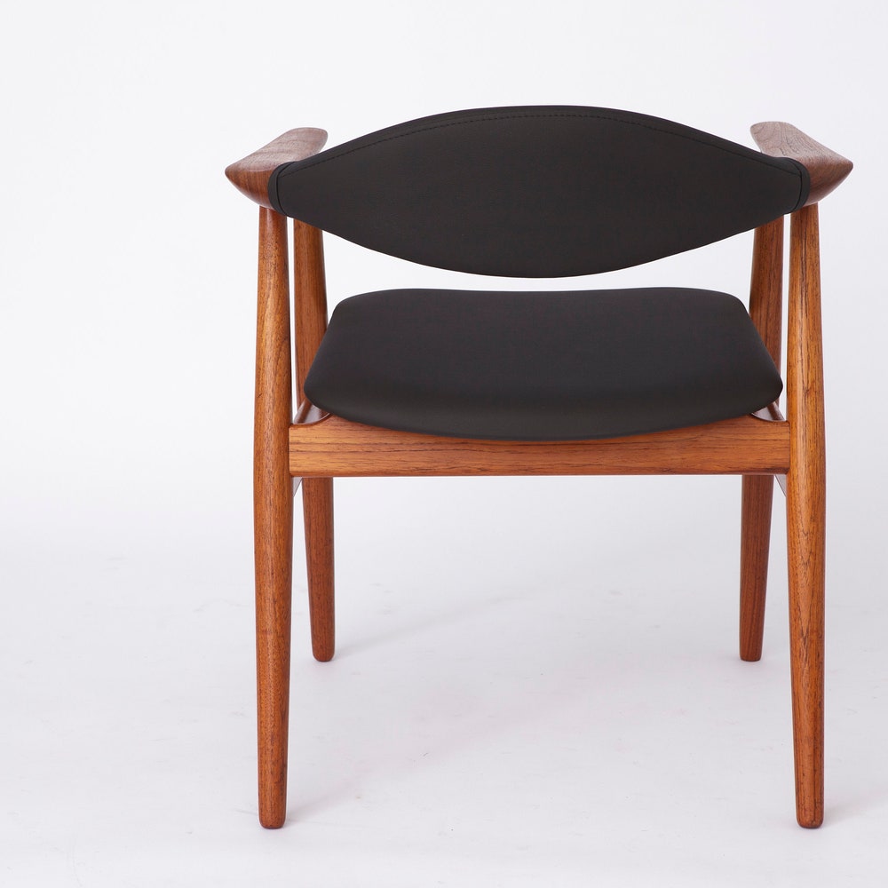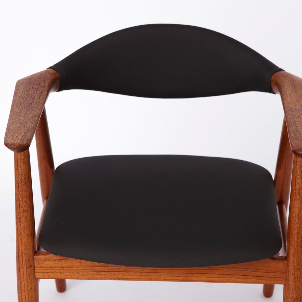 Mid-Century Teak Armchair by Erik Kirkegaard for Glostrup | 1960s | Reupholstered in Black Skai | Worldwide Shipping