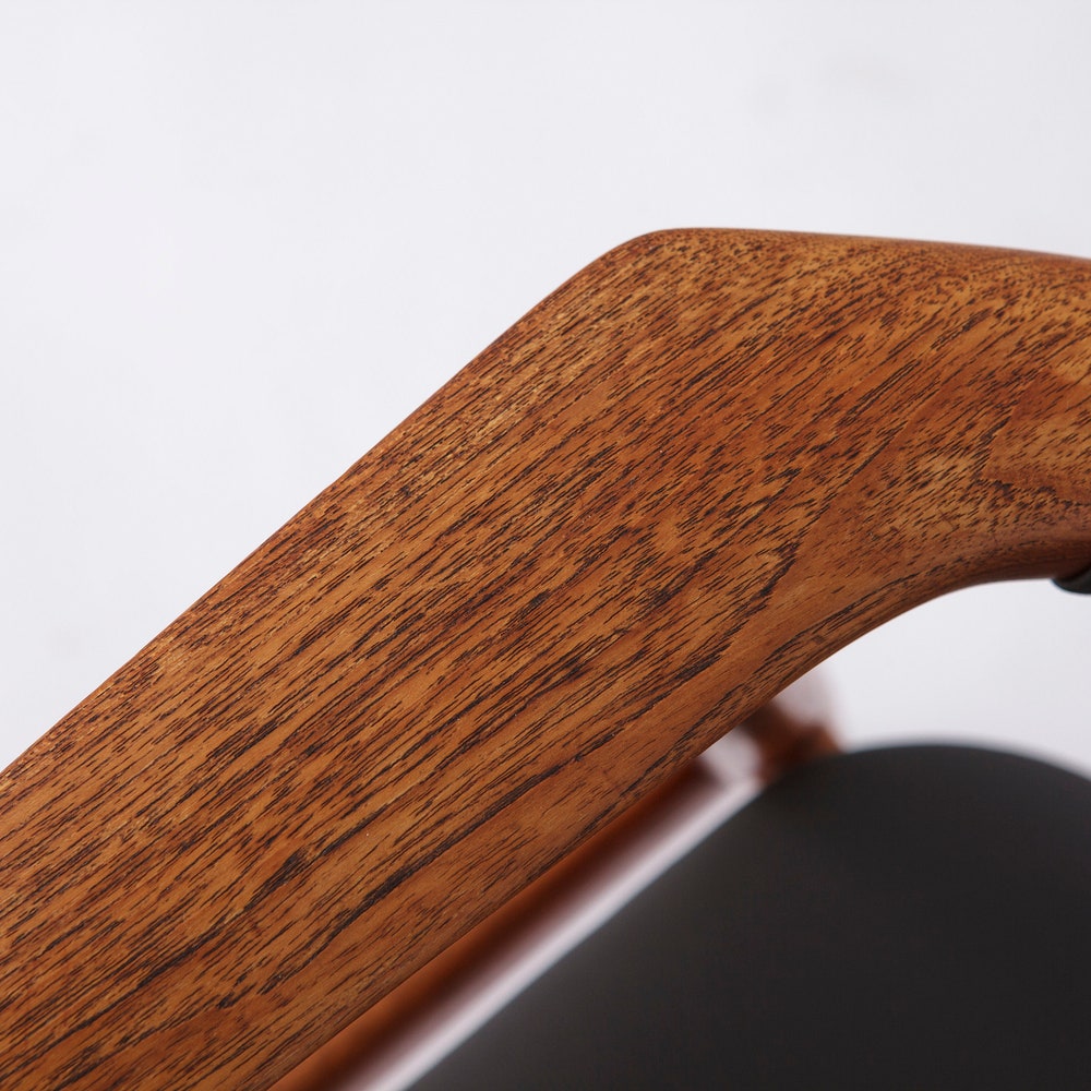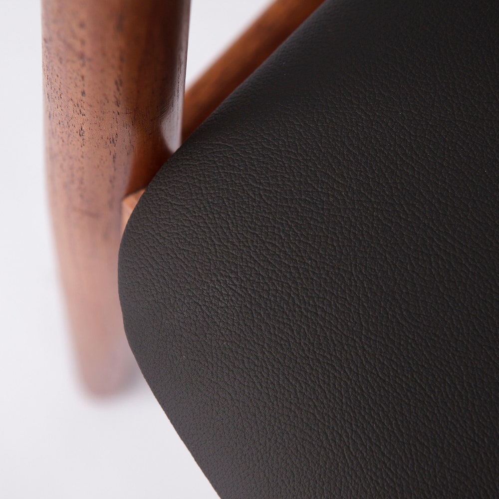 Material: High-quality teak wood frame, reupholstered with black skai material for a sleek, modern look.