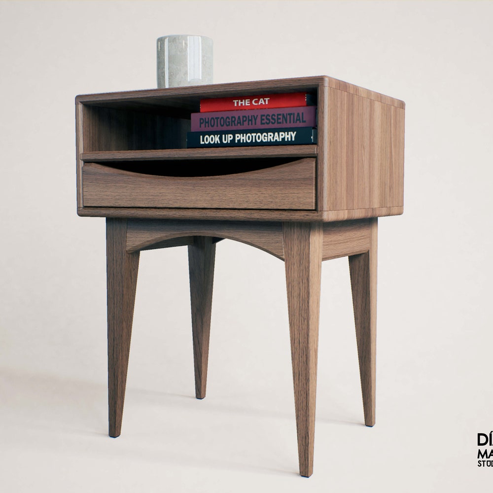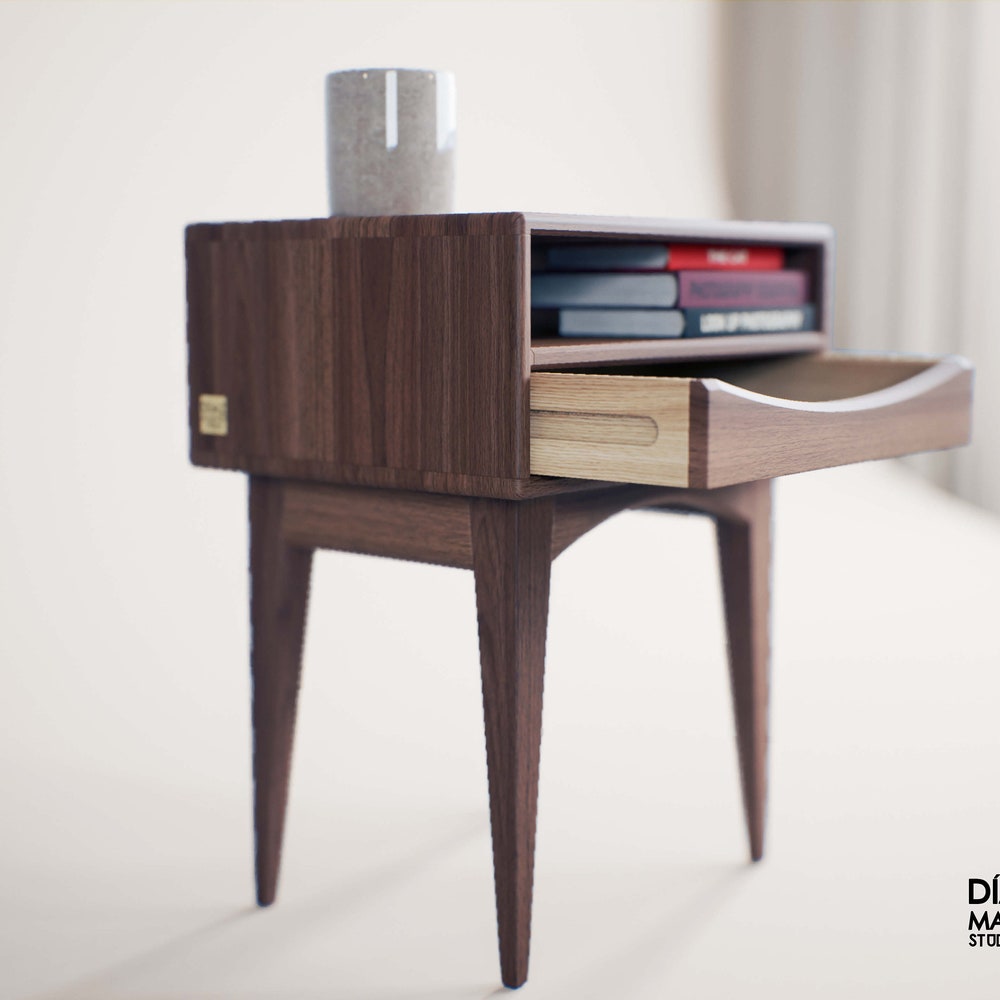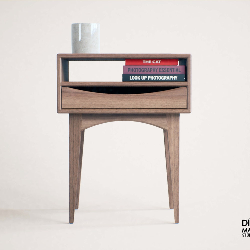 Mid Century Wooden Nighstand with Drawer made from American Walnut, Solid Walnut Nightstand, Solid Walnut Oak Bedside Table with Shelf