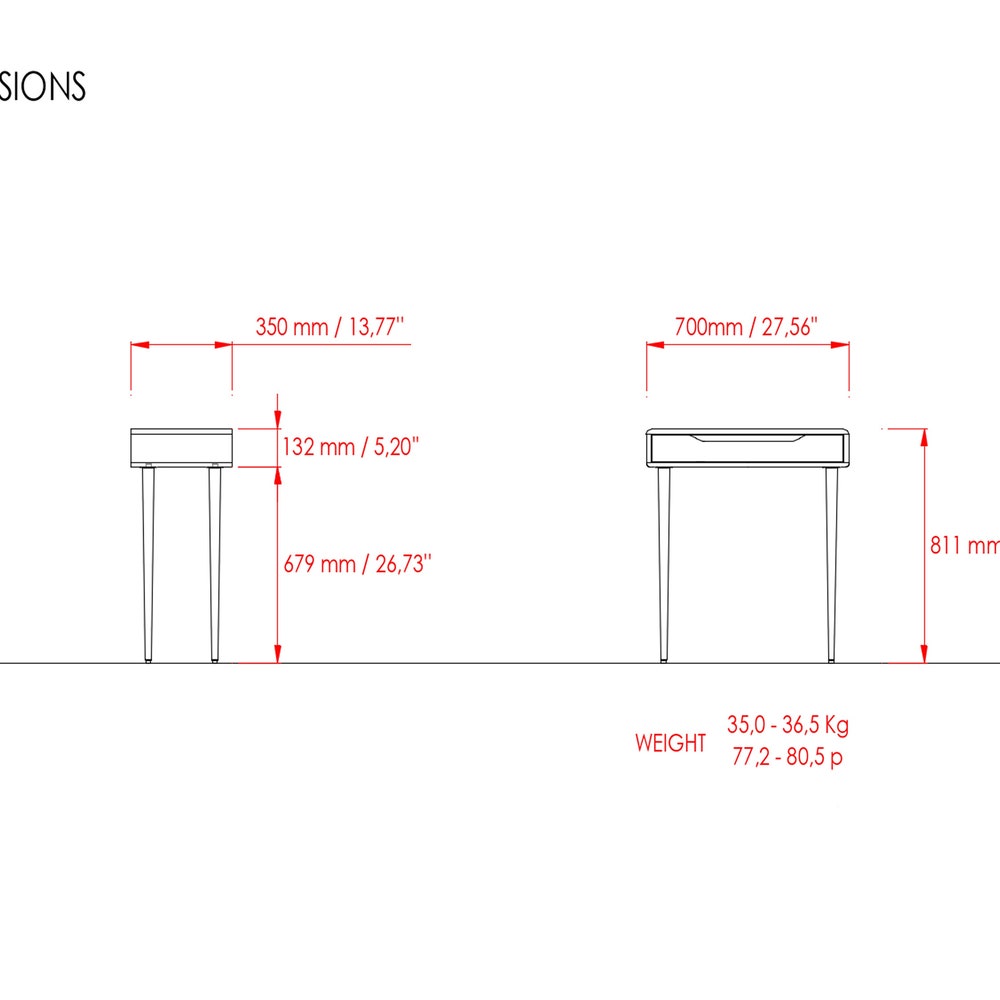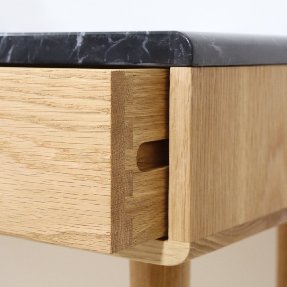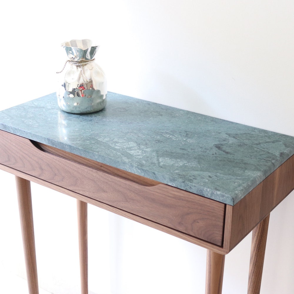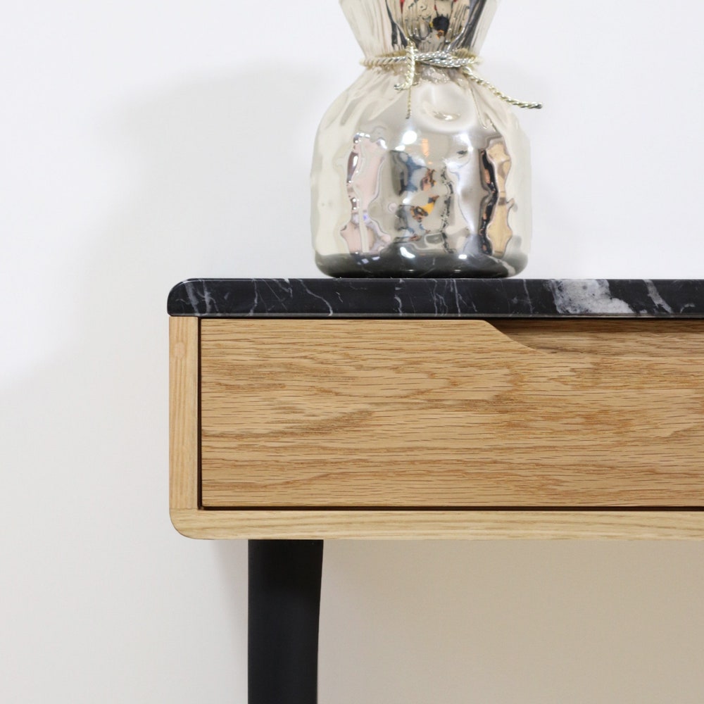 Midcentury console table with 1 drawer and 4 Legs in solid american Oak or Walnut with Marble top