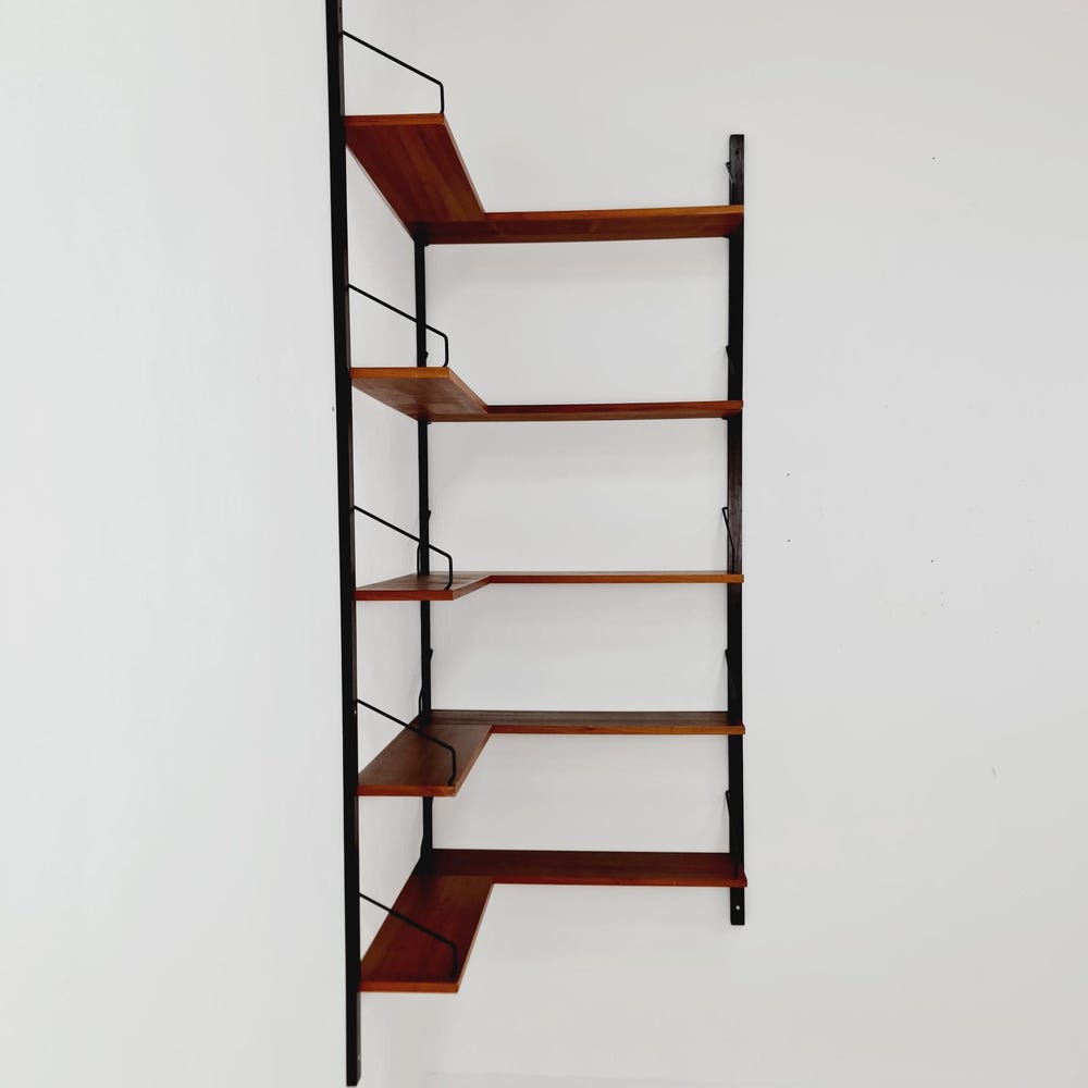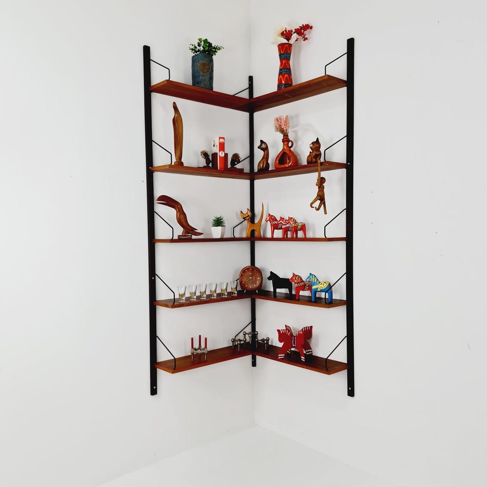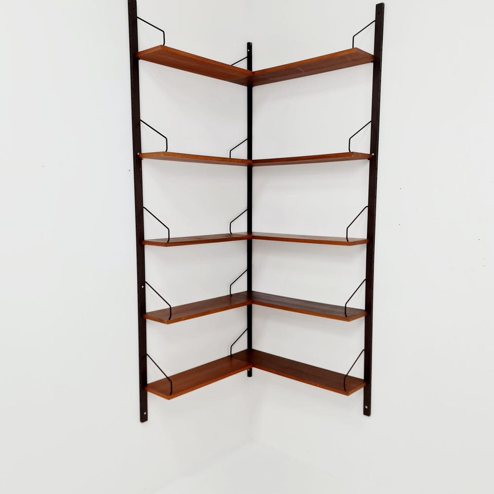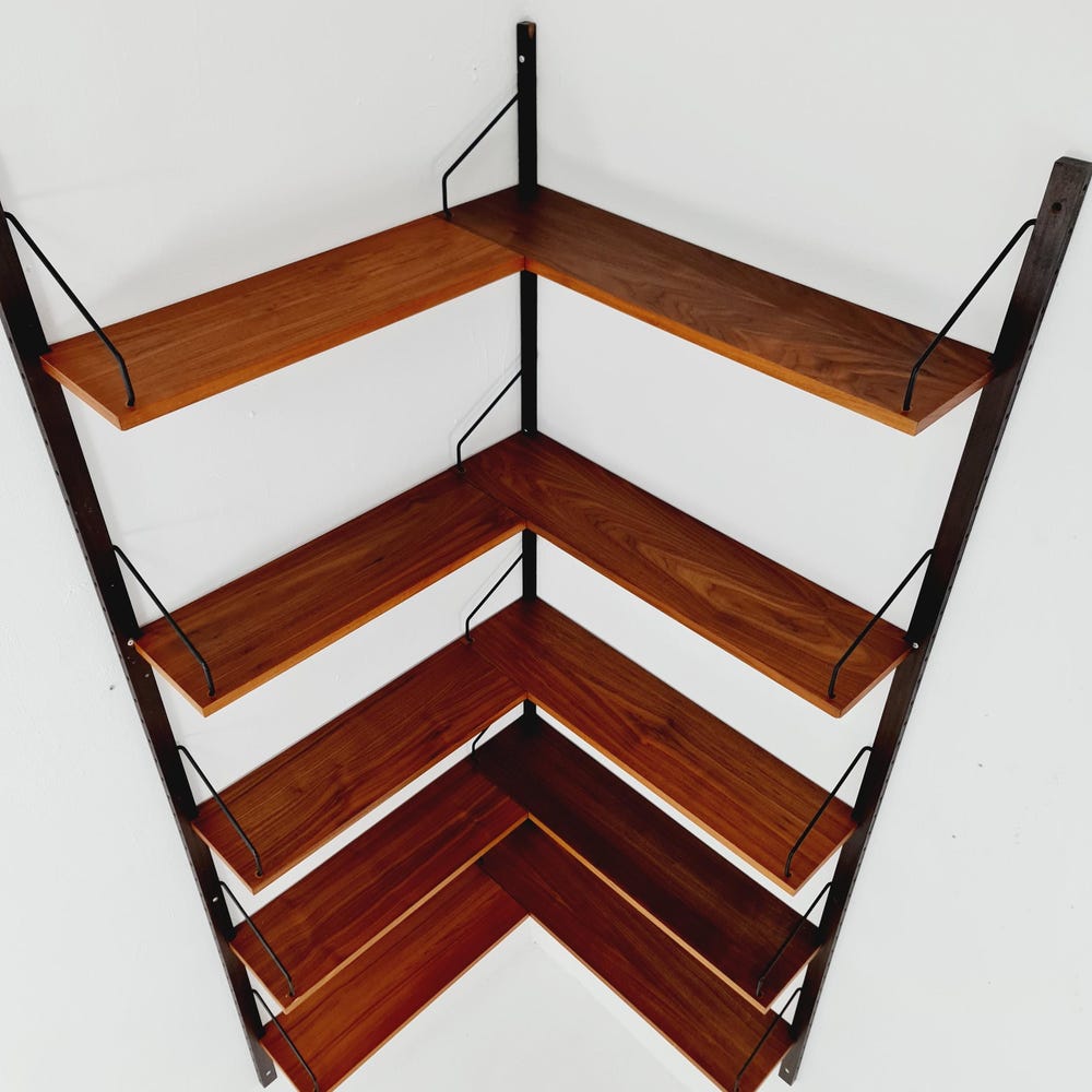 Midcentury Danish walnut Corner Wall-Mounted Shelving Unit, by Royal for Poul Cadovius, 1960s