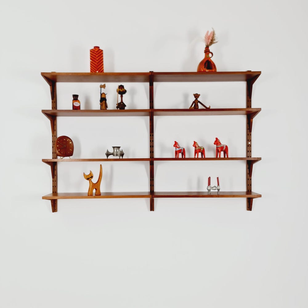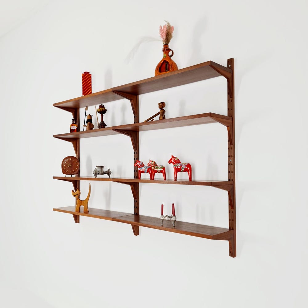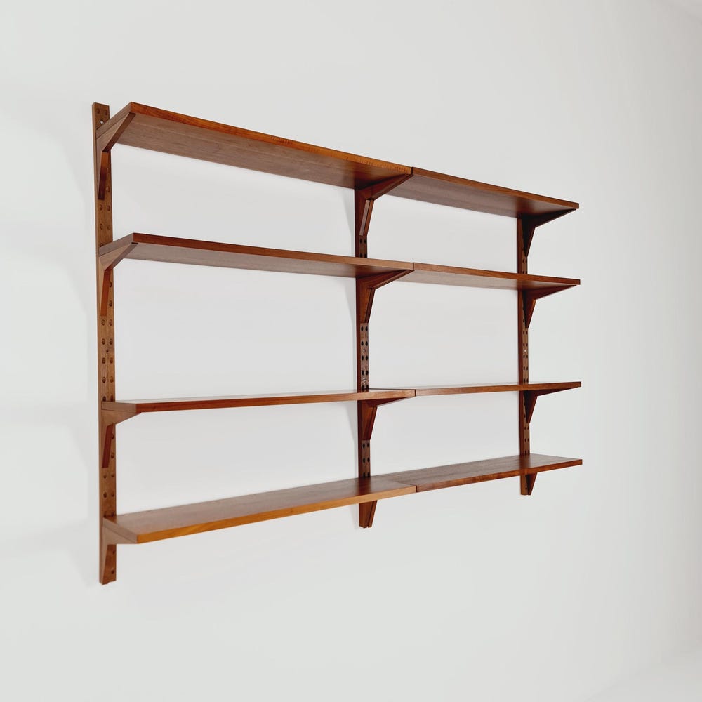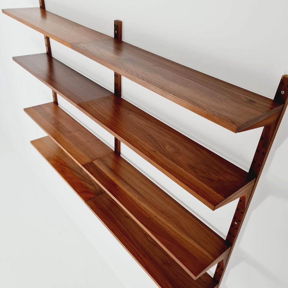 Midcentury Danish walnut Wall-Mounted Shelving Unit, by Poul Cadovius, 1960s