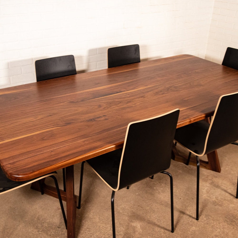 Add a touch of midcentury modern elegance to your dining room with this midcentury dining table. The organic lines of the rounded corners and the multi tones of the walnut wood combine to give the table its distinctive style. We build every table to order so there are many ways to make this table perfect for you.