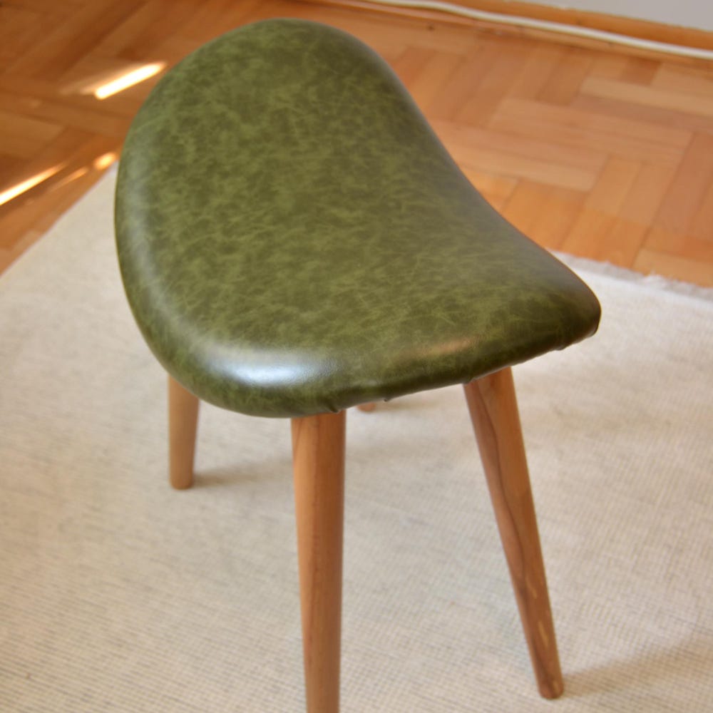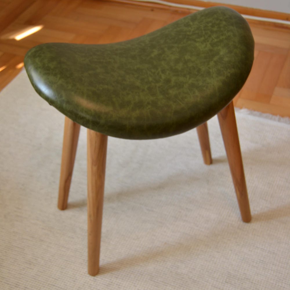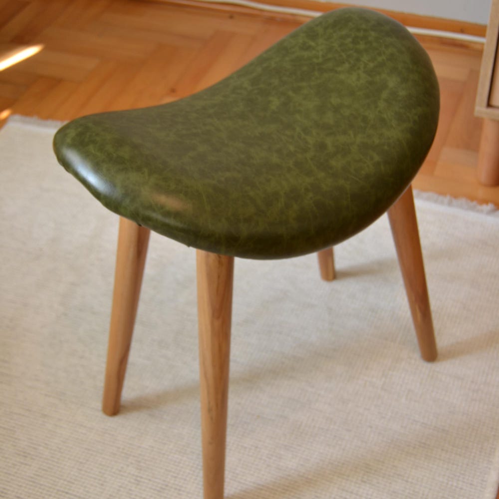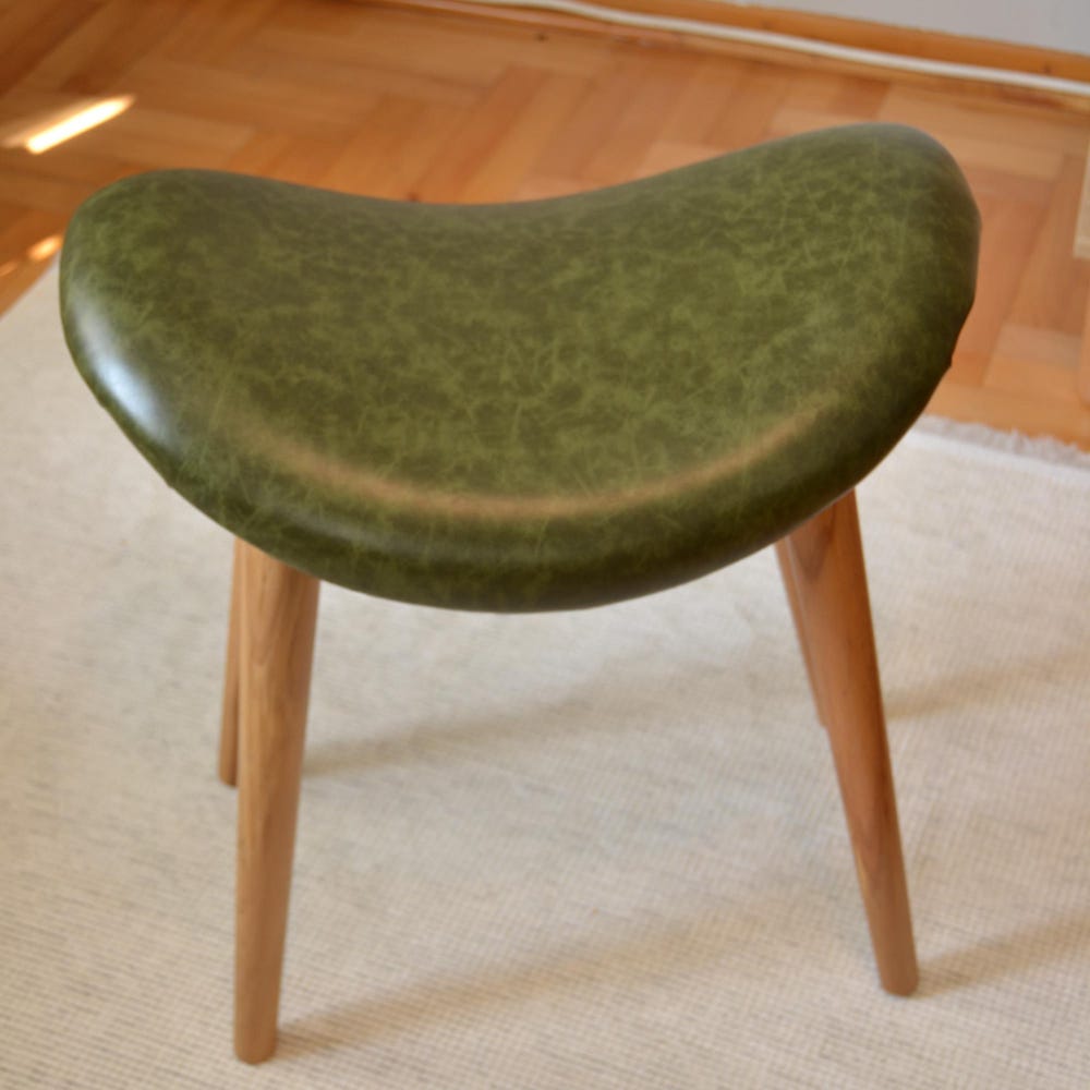 Milo Wooden Stool with Faux Leather Seat – Modern, Ergonomic, and Durable Design