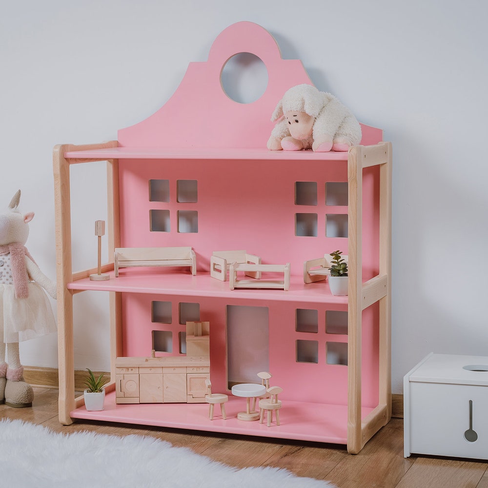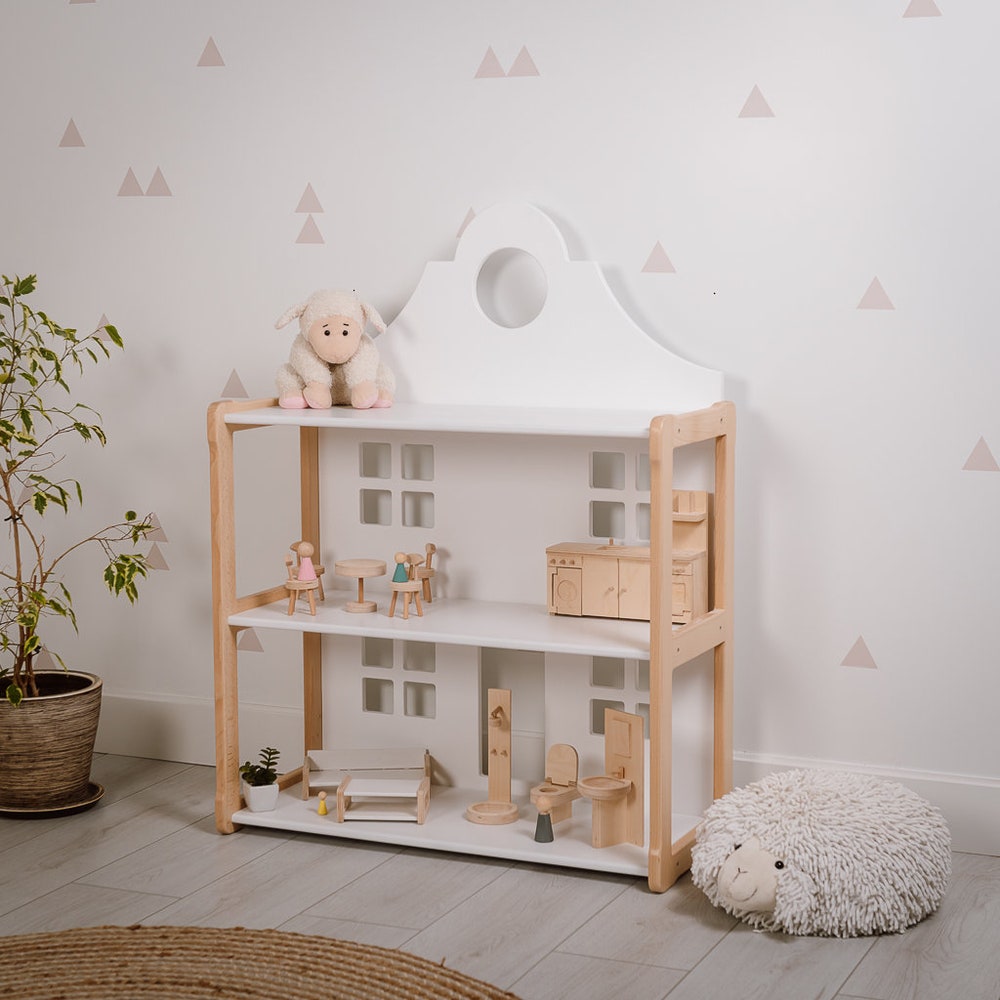 MIMI DOLLHOUSE Bookshelf, MONTESSORI Bookshelf, Wooden Doll House Furniture Nursery Bookshelf Playroom Décor, Gift for kids