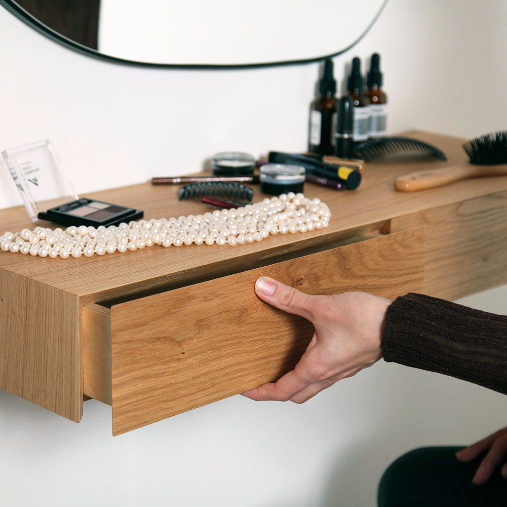 Minimalist floating dressing table / floating vanity – made of solid oak