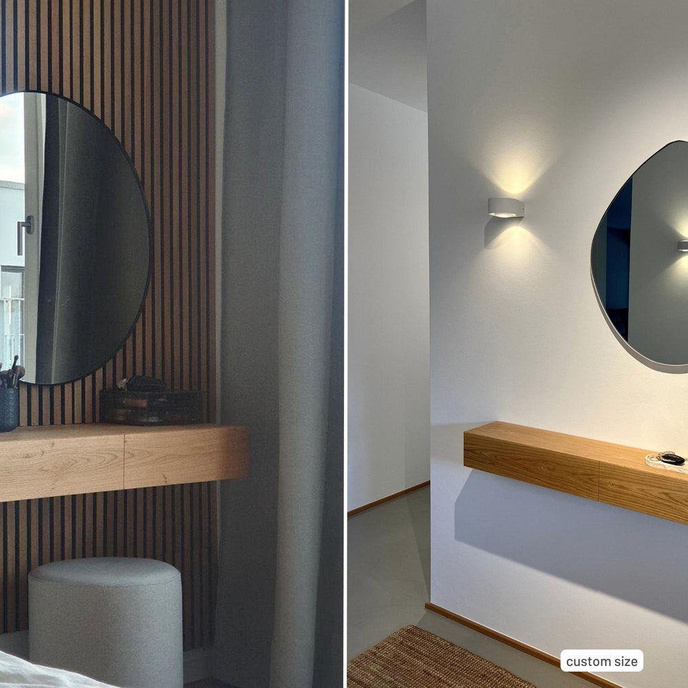 It’s the perfect spot for spending your valuable ✨me-time✨! Organize your makeup like a pro 💄, prepare for a date night 💋 or just chill out 😌 – it’s all possible with this minimalist floating dressing table. Handcrafted, made of solid oak and finished with a natural oil – this furniture does not just offer a space-saver, practical way of storage, but serves as a truly impressive piece of interior design that will last for decades.