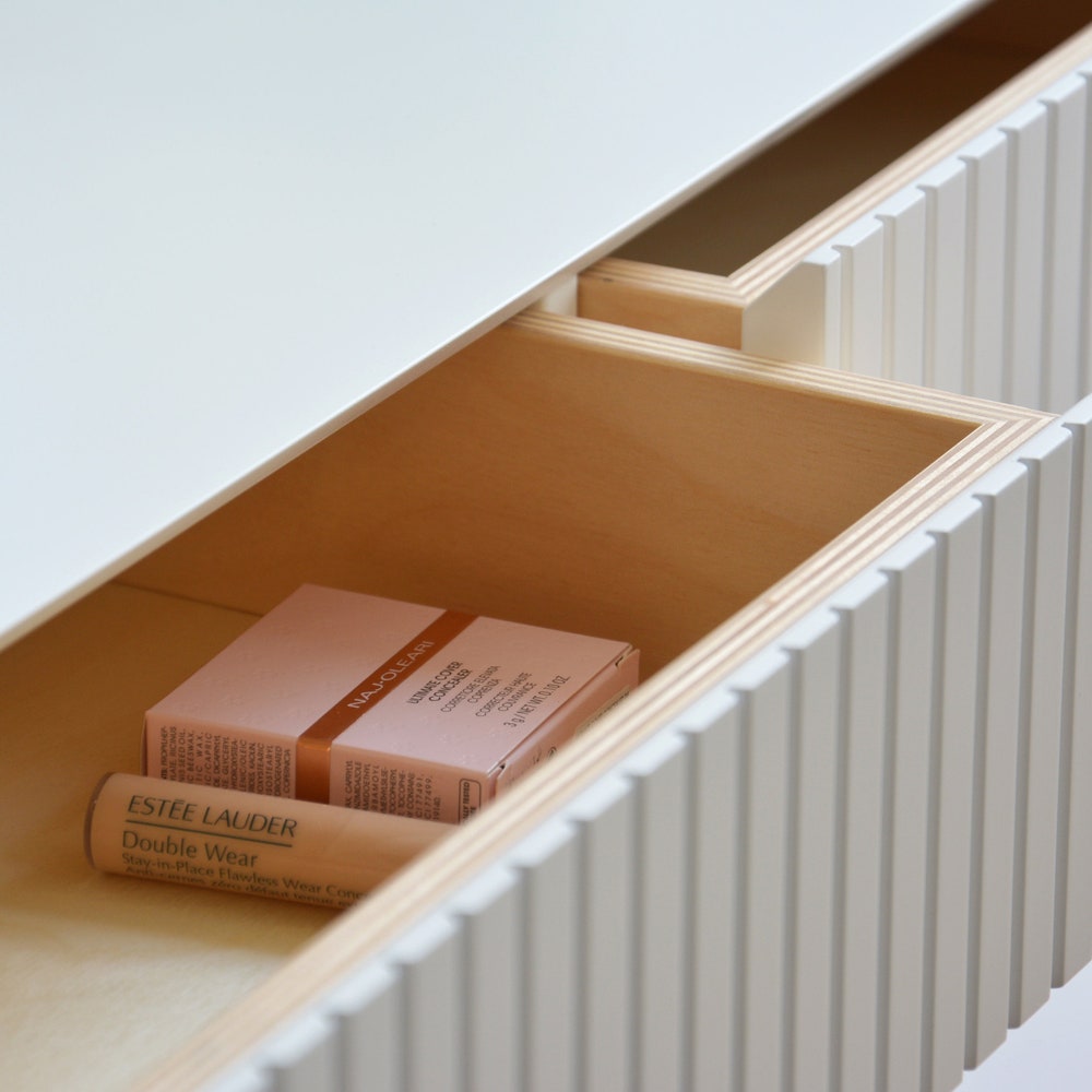 Fluted dressing table / fluted console table – a clean white look and a contemporary minimalist design for your bedroom or living room