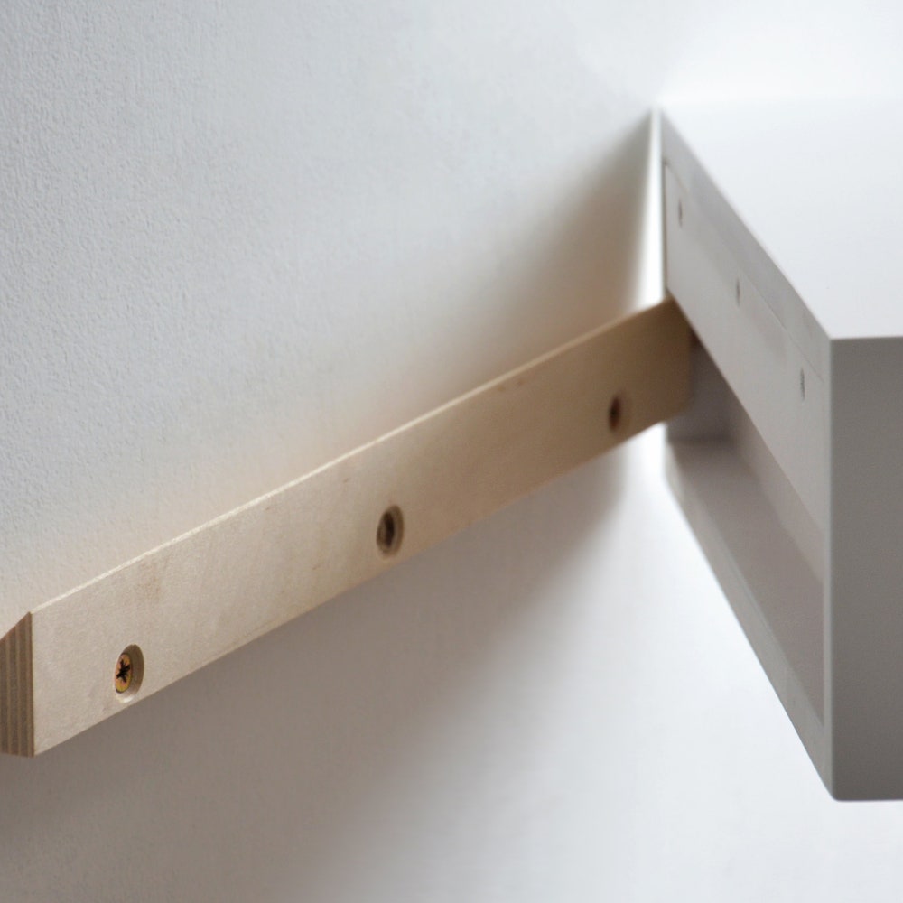 The shelves have a unique, invisible mounting system called french cleat, without any mounting brackets, which make the shelves “floating”.