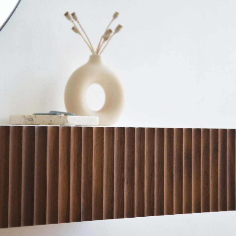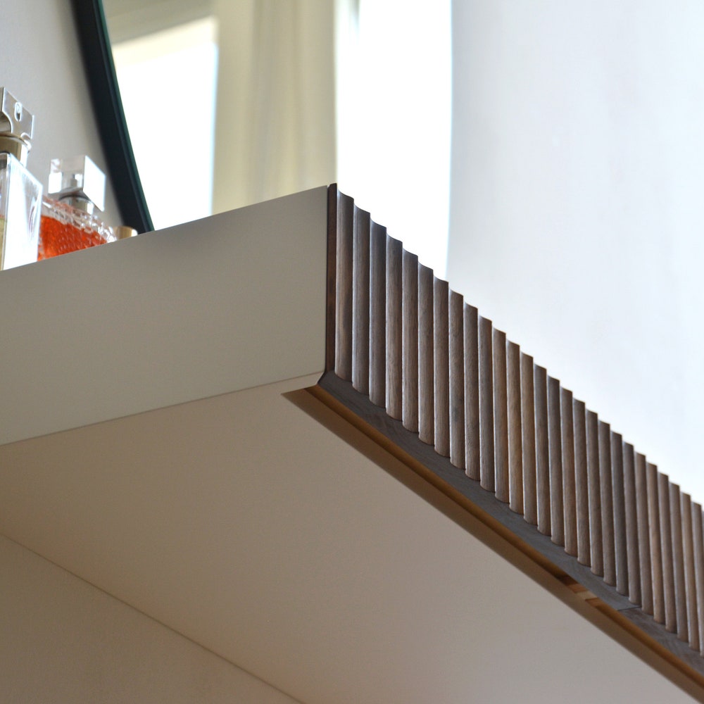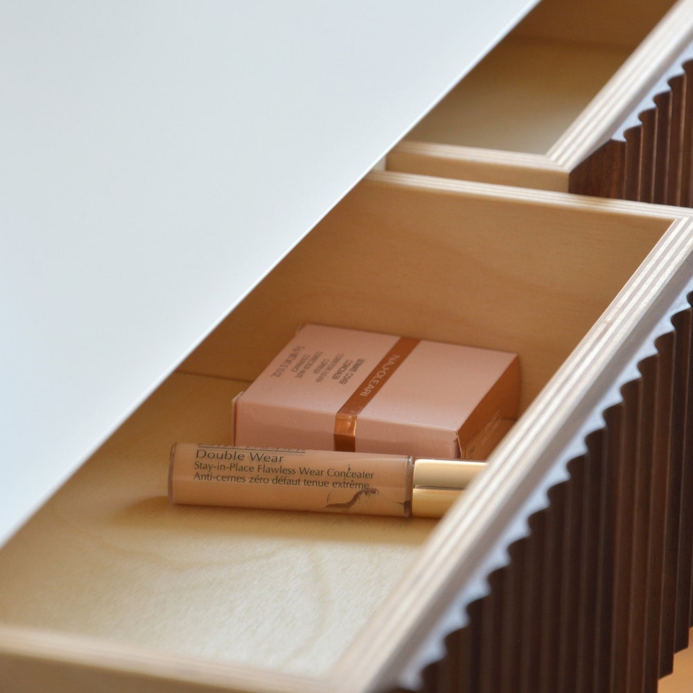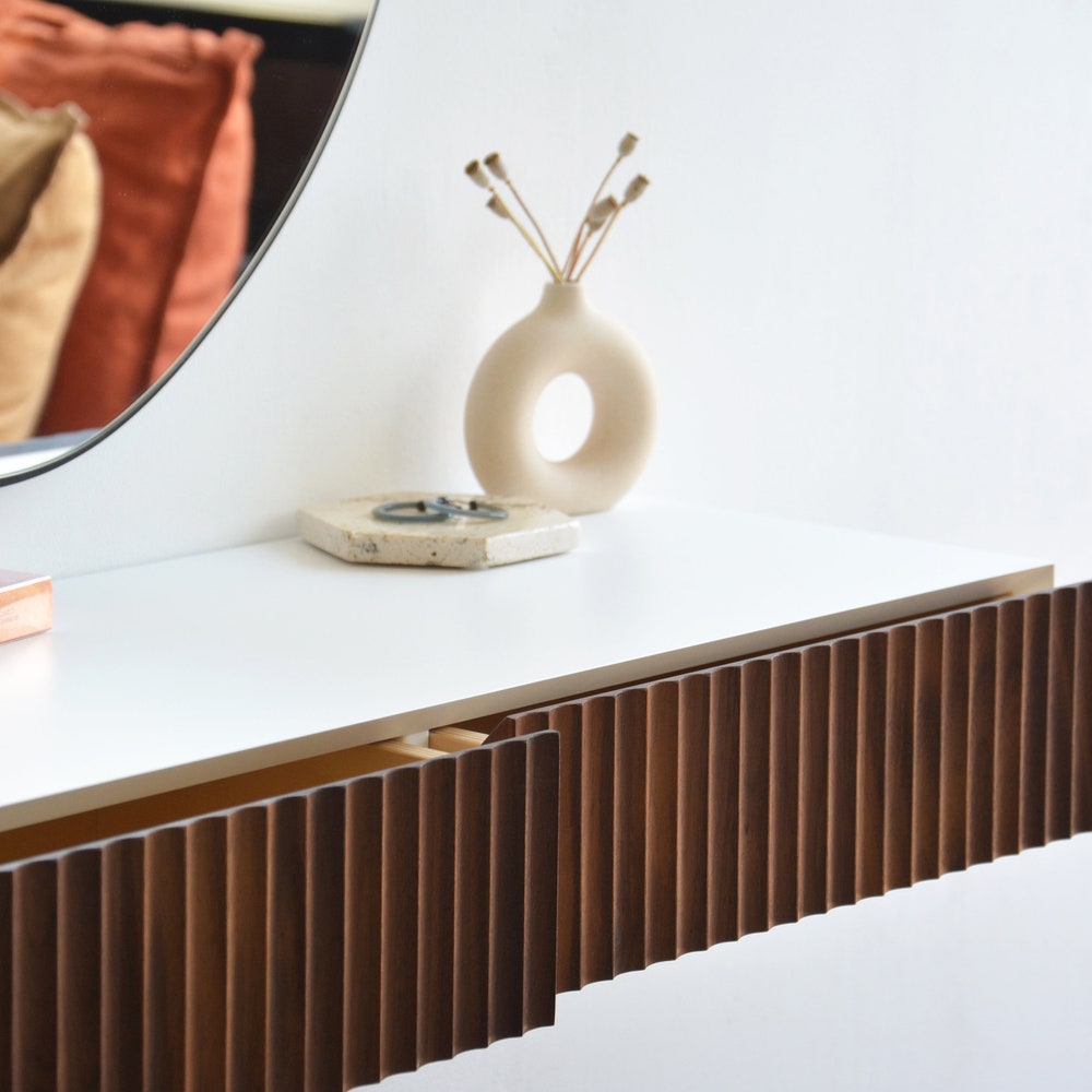 Minimalist fluted dressing table / fluted console table with walnut drawers