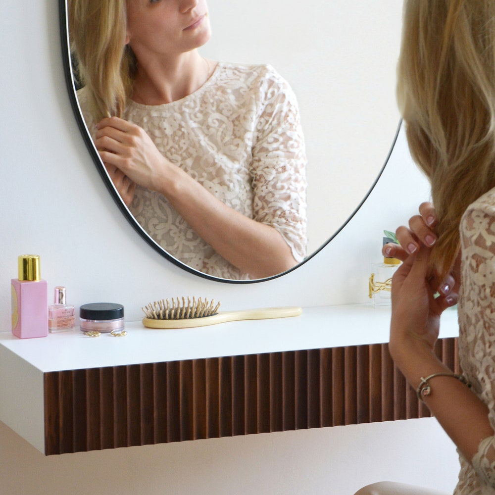 Fluted dressing table / fluted console table with walnut drawers – an elegant minimalist look and a contemporary for your bedroom or living room