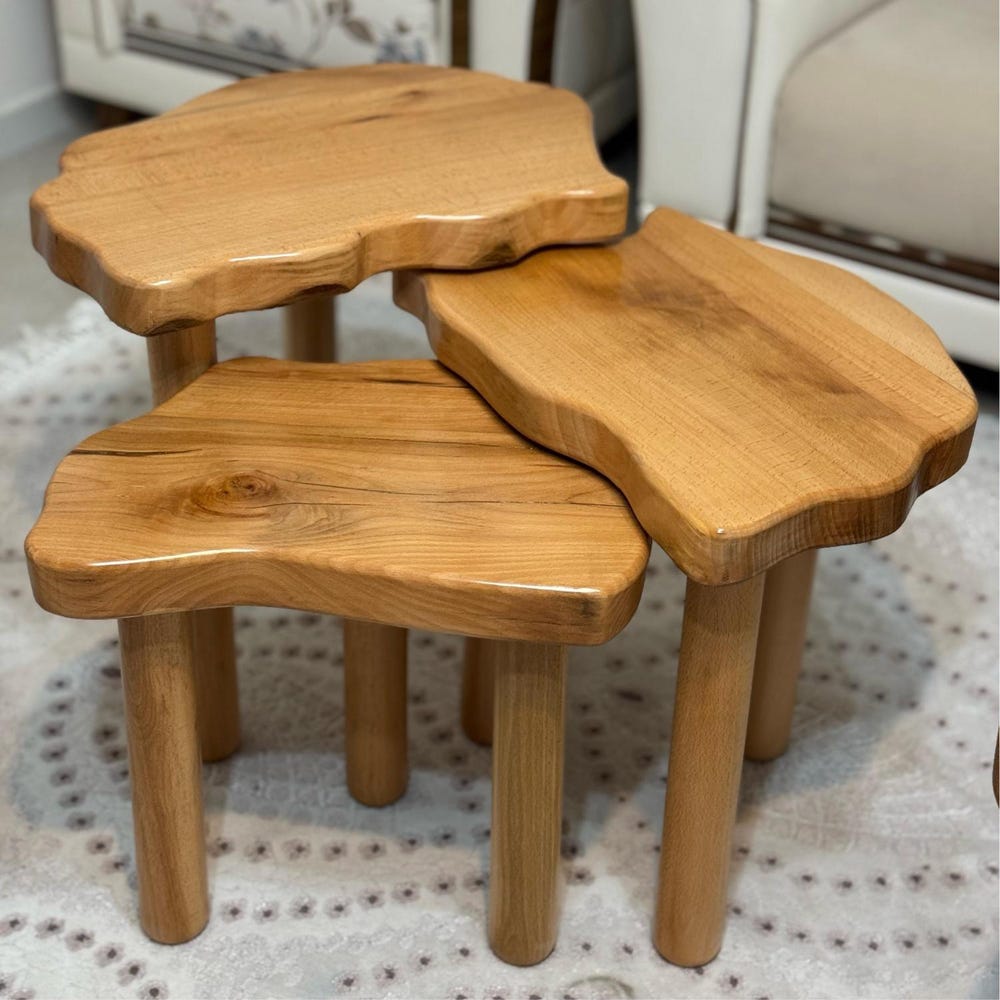 About This Item This beautiful set of 4 minimalist nesting tables is handmade from a perfect blend of walnut and beech wood. Ideal for those seeking modern, natural wood furniture with an eco-friendly touch, these tables are perfect for adding style to your living room. The set includes 3 nesting side tables and 1 center […]