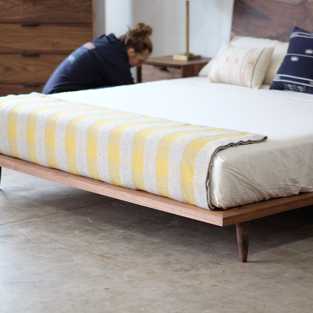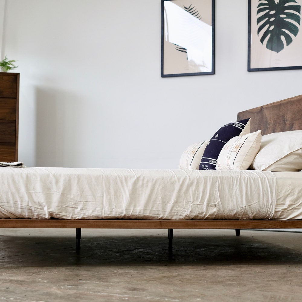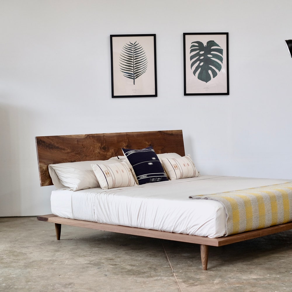 Minimalist Walnut Platform Bed | Solid Wood Walnut Bed Frame | Mid Century Modern Furniture | Hand Crafted Bed Frame & Headboard | Bed No. 6