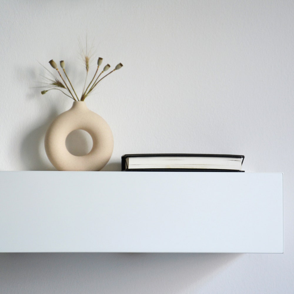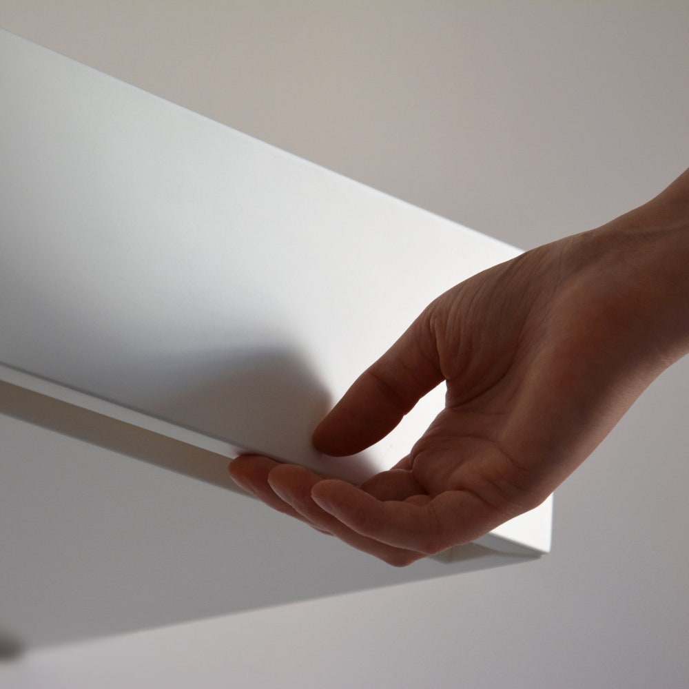 The shelves have a unique, invisible mounting system called french cleat, without any mounting brackets, which make the shelves “floating”.