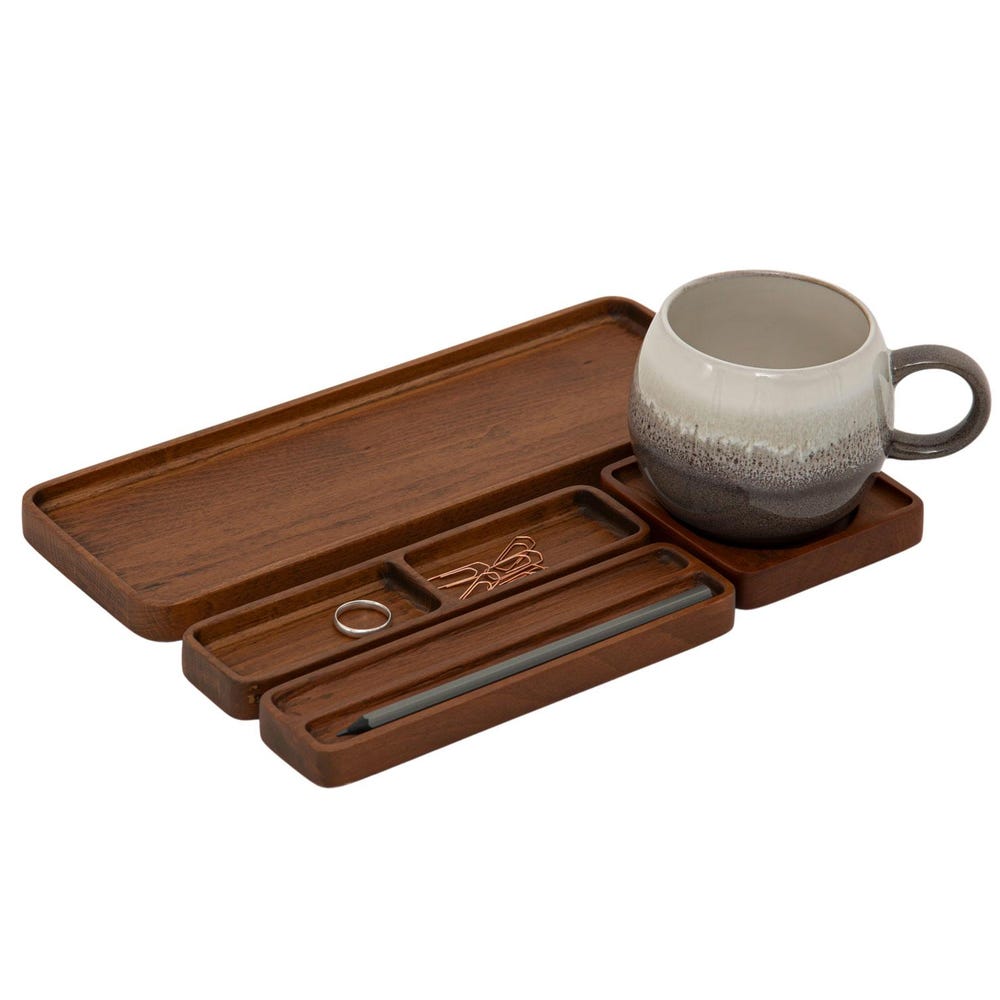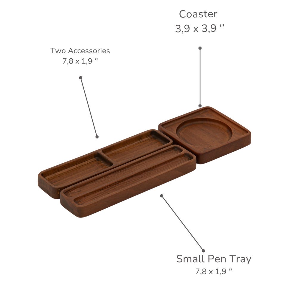 The foundation of the Eterna set, this spacious tray is perfect for organizing everyday essentials such as notebooks, glasses, tech devices, or small tools. Its minimalist design ensures everything is within reach while keeping your workspace neat and tidy.