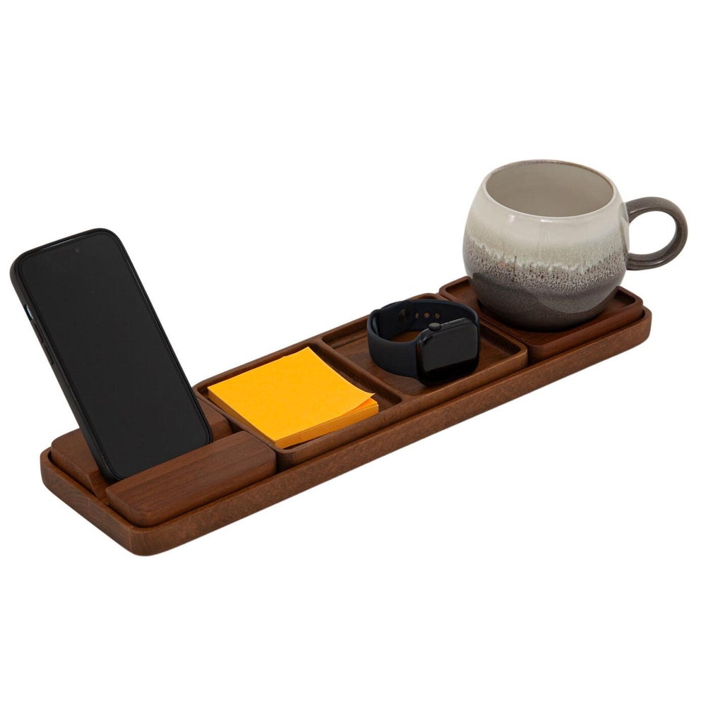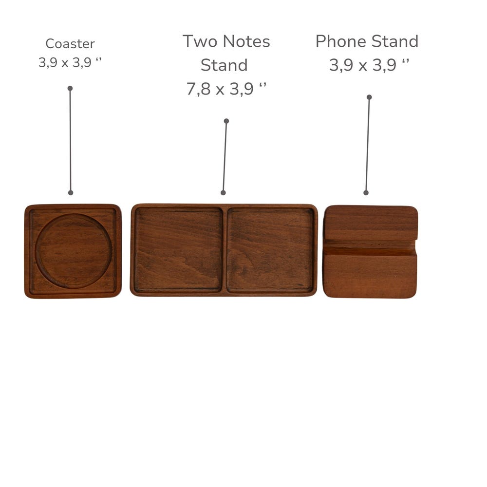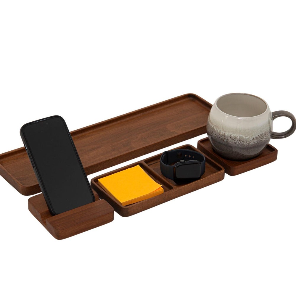 Minimalist Wooden Desk Organizer Set with Phone Stand, Coaster, Note Holder – Handmade Office Gift for Men, Home Workspace Decor