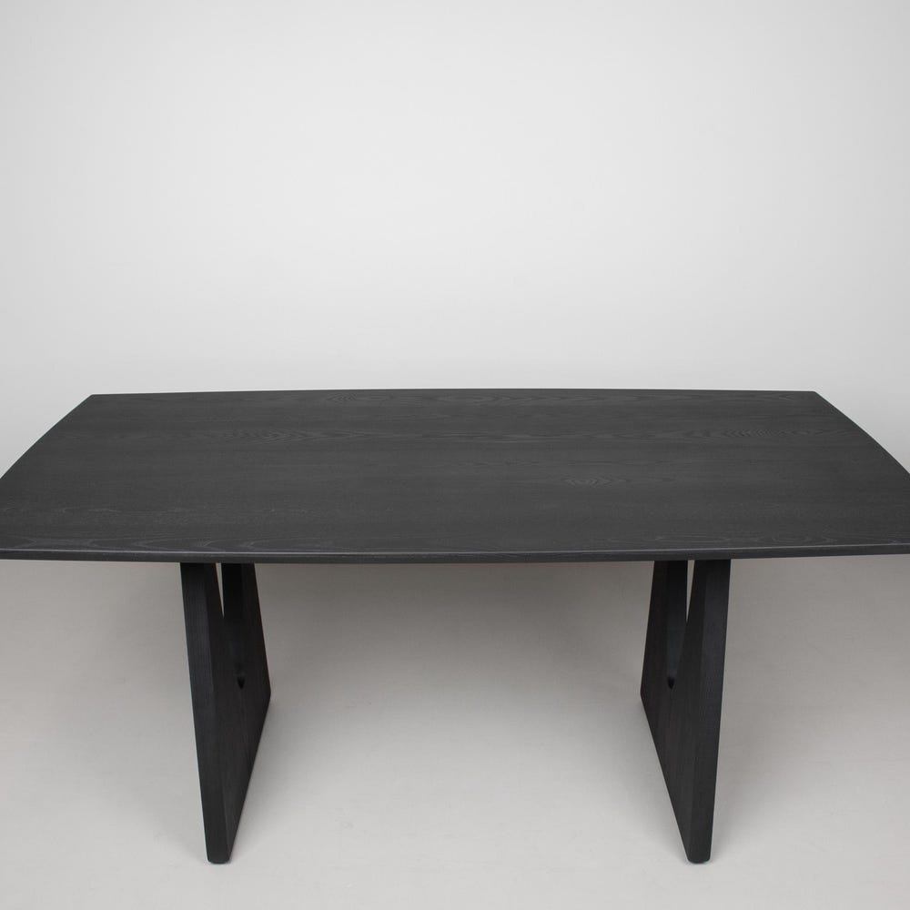 This dramatic modern black dining table is ready to be the center of attention. The squoval shape rounds out in the middle to facilitate conversation and the custom legs are eye-catching. Every detail of this table was designed by our customer to be bold and we love how it came together. We build every table to order so there are many ways to make this table perfect for you.