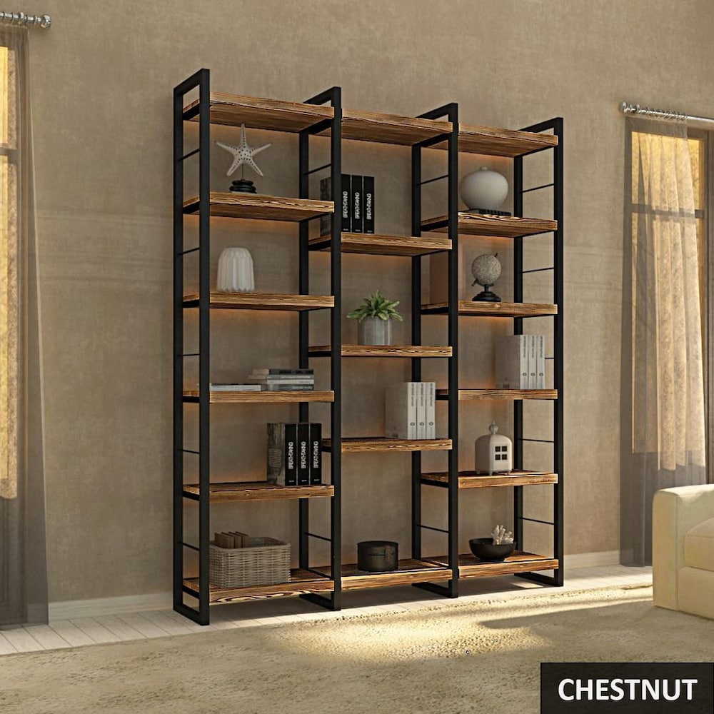 Modern style bookshelf is an excellent choice to sort books as well as provide aesthetic looks with intelligent tile design. The classic color spine wood and steel metal racks make it a more prominent and elegant bookshelf.