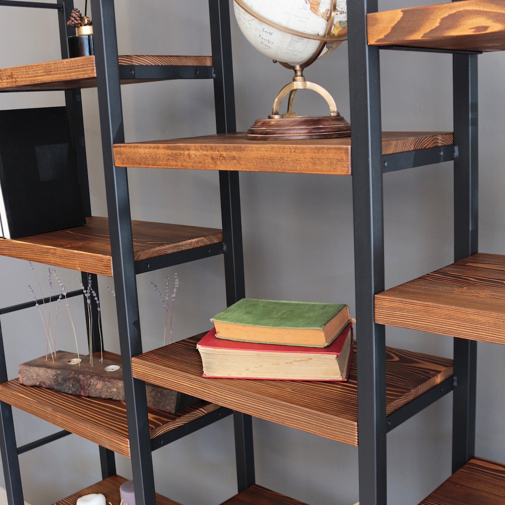 The whole wood shelves contain Matte varnish in multiple colors. The steel metal racks also contain dainty black powder coating paint. The choice of color makes it very useful to match with your room furniture and wall color.