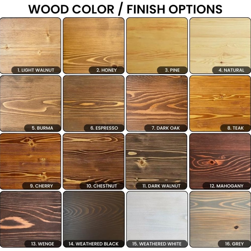>Wood finish Matt varnish/stain. (Different color options are available.)
