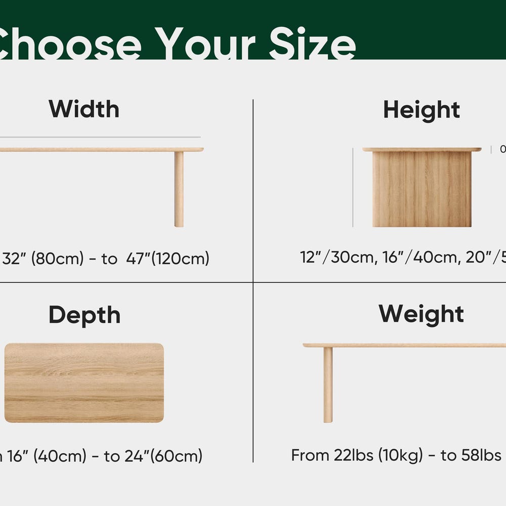 𝗢𝘃𝗲𝗿𝗮𝗹𝗹 𝘁𝗮𝗯𝗹𝗲 𝗵𝗲𝗶𝗴𝗵𝘁 : You can choose the standard 𝟭𝟲” (𝟰𝟬𝗰𝗺) or custom from 8″ (20cm) to 20″ (50cm) including tabletop 20mm (0,78″).