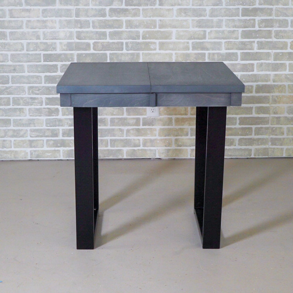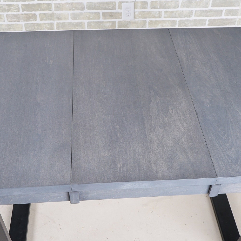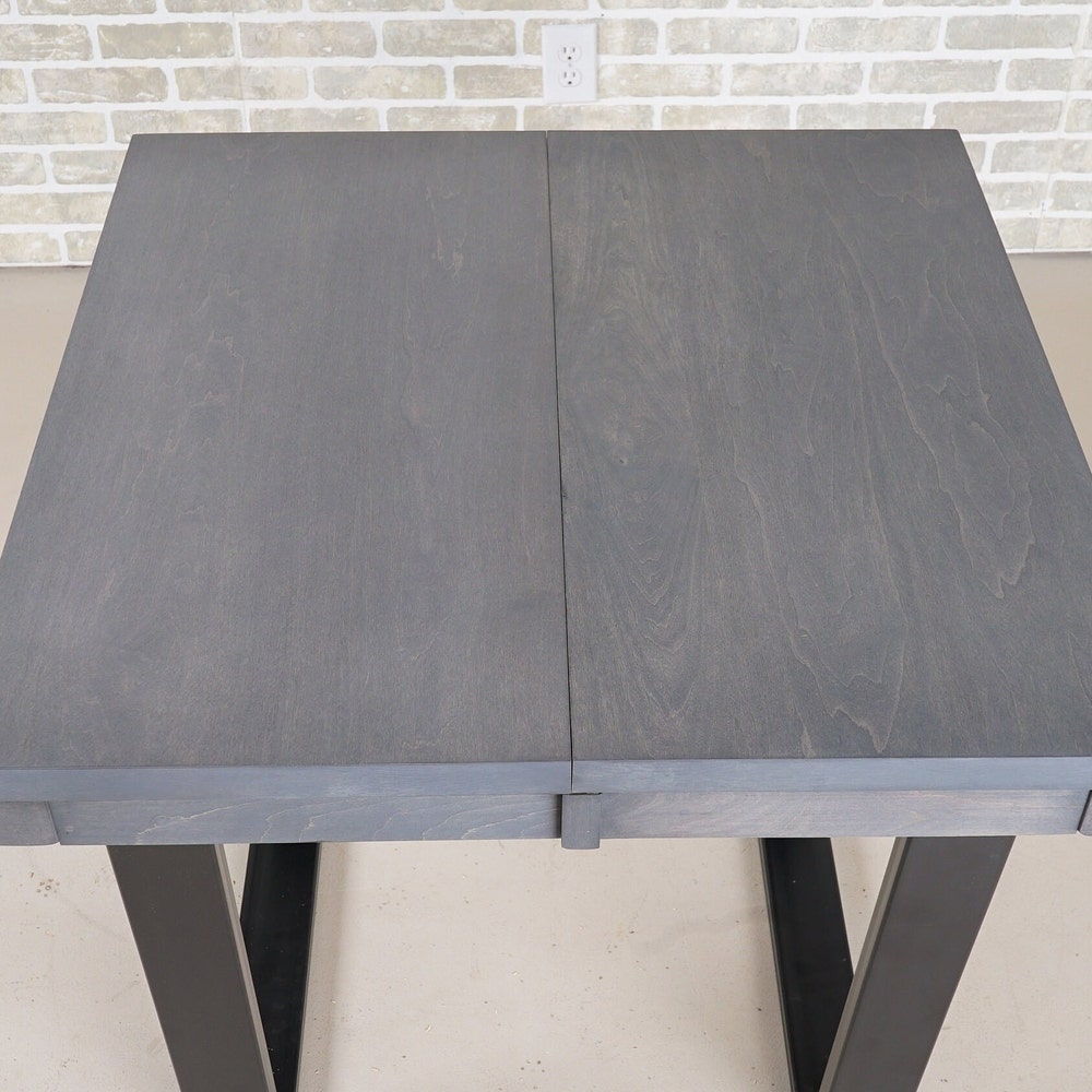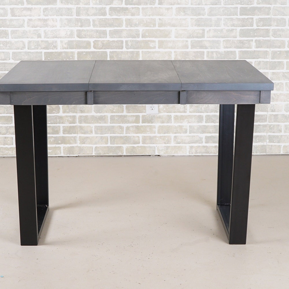 This modern expandable dining table is perfect a small room where space is at a premium. The everyday size seats 2, even 4 if you needed to. It is an expandable table with one 15″ leaf, providing seating for 6. Finished in cool gray tones, this table works well in modern spaces. We build every table to order so there are many ways to make this table perfect for you.