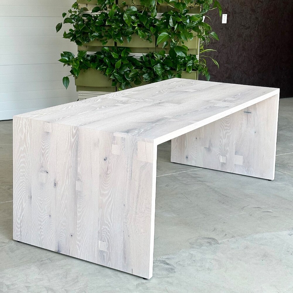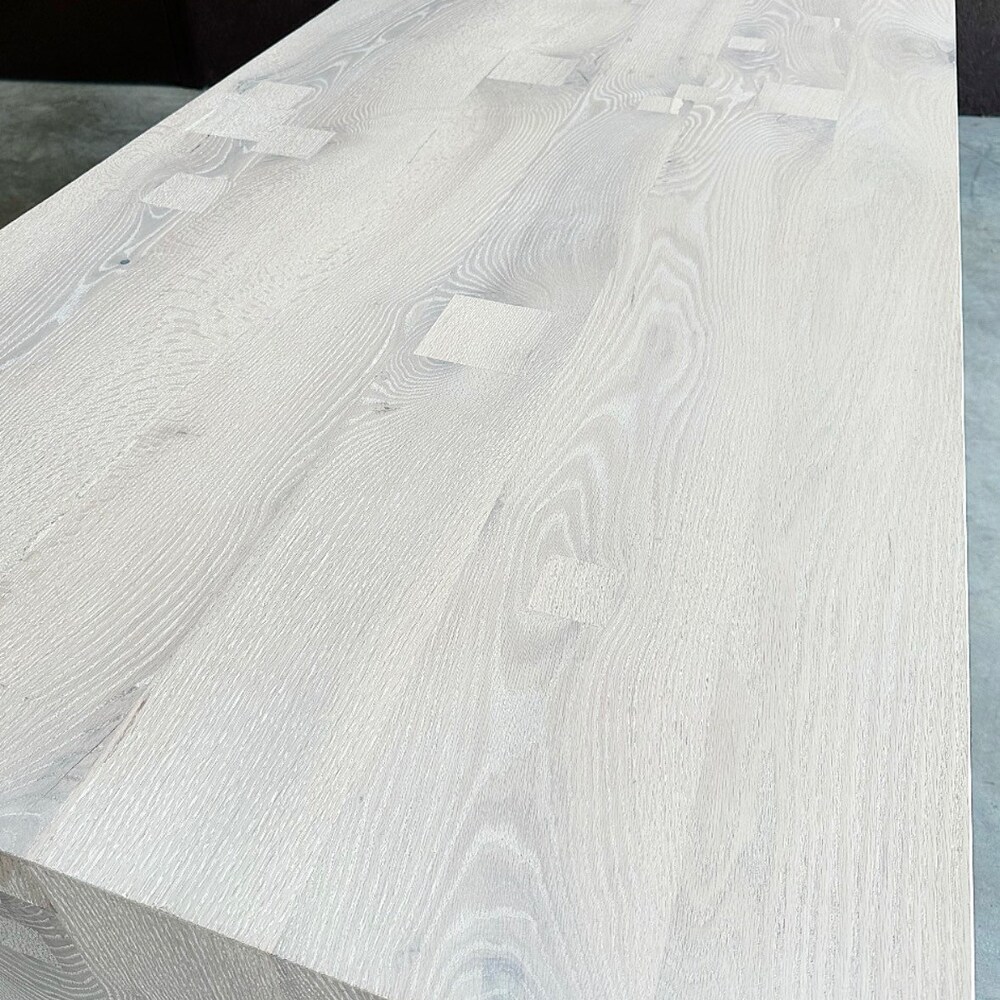 This table pictured was finished in Rubio Monocoat Nordic White pre-color with Super White top coat. Also offered in Intense Black.