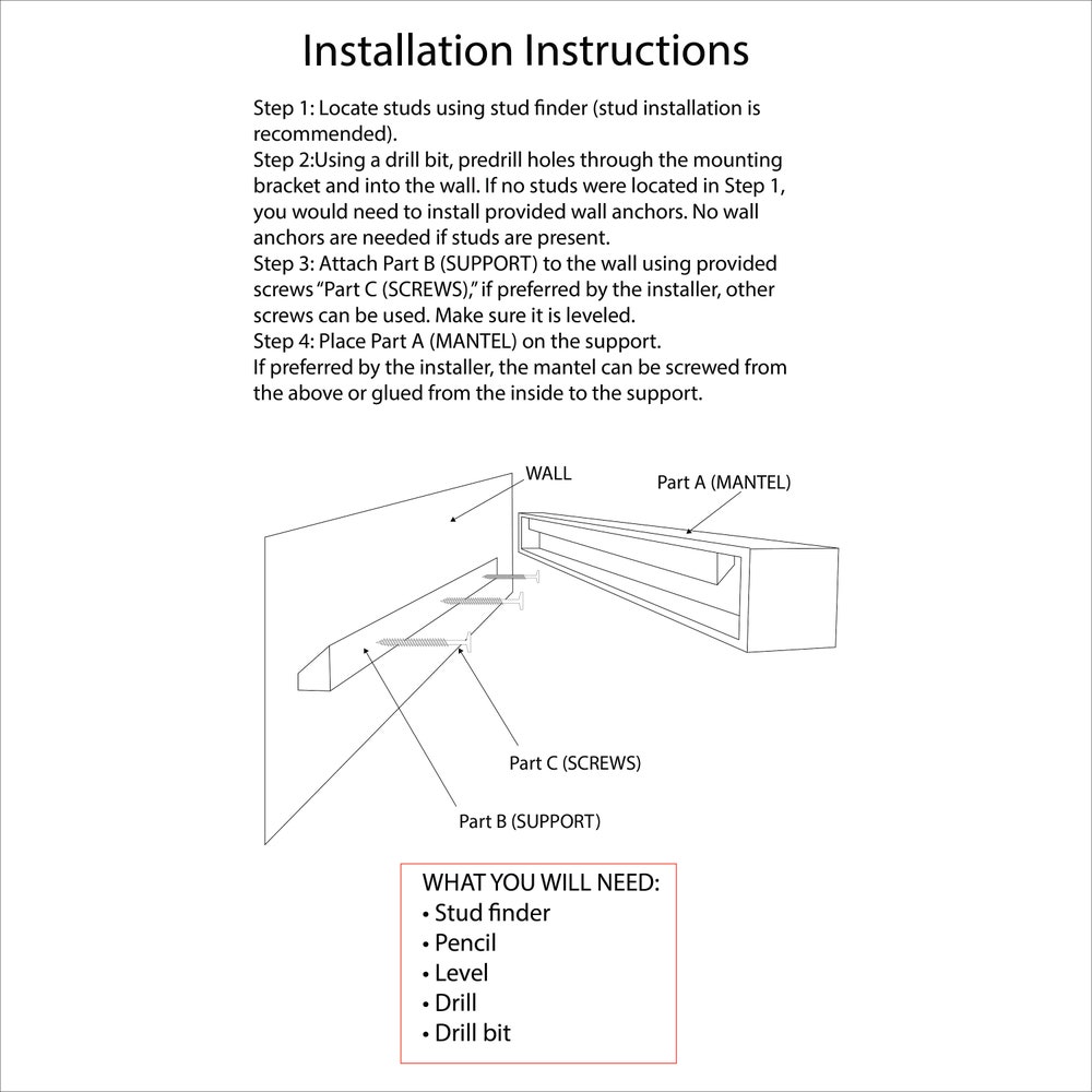 WHAT YOU WILL GET: Mantel, installation bracket, screws, and anchors