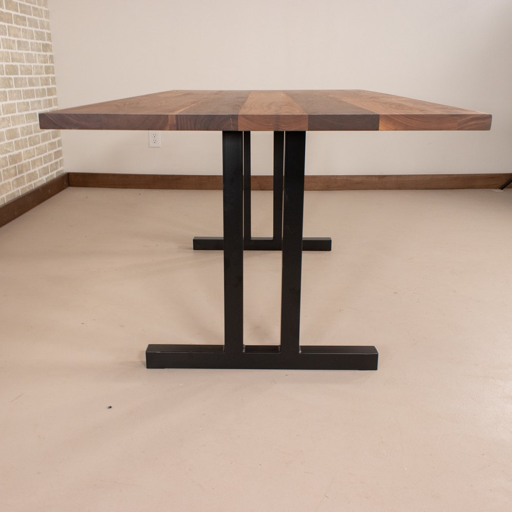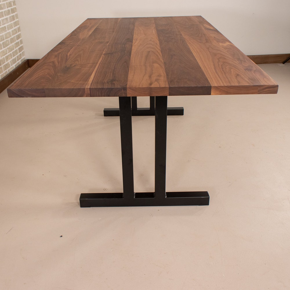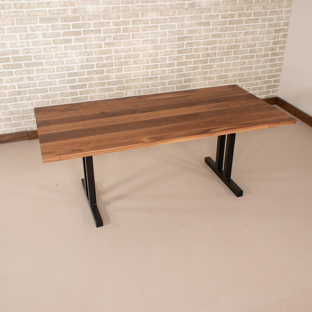 Modern Kitchen Table, Walnut Table Top on Steel Tuttle Base, Classic Walnut Dining Table, Solid Wood Kitchen Table, Walnut Rectangle Table