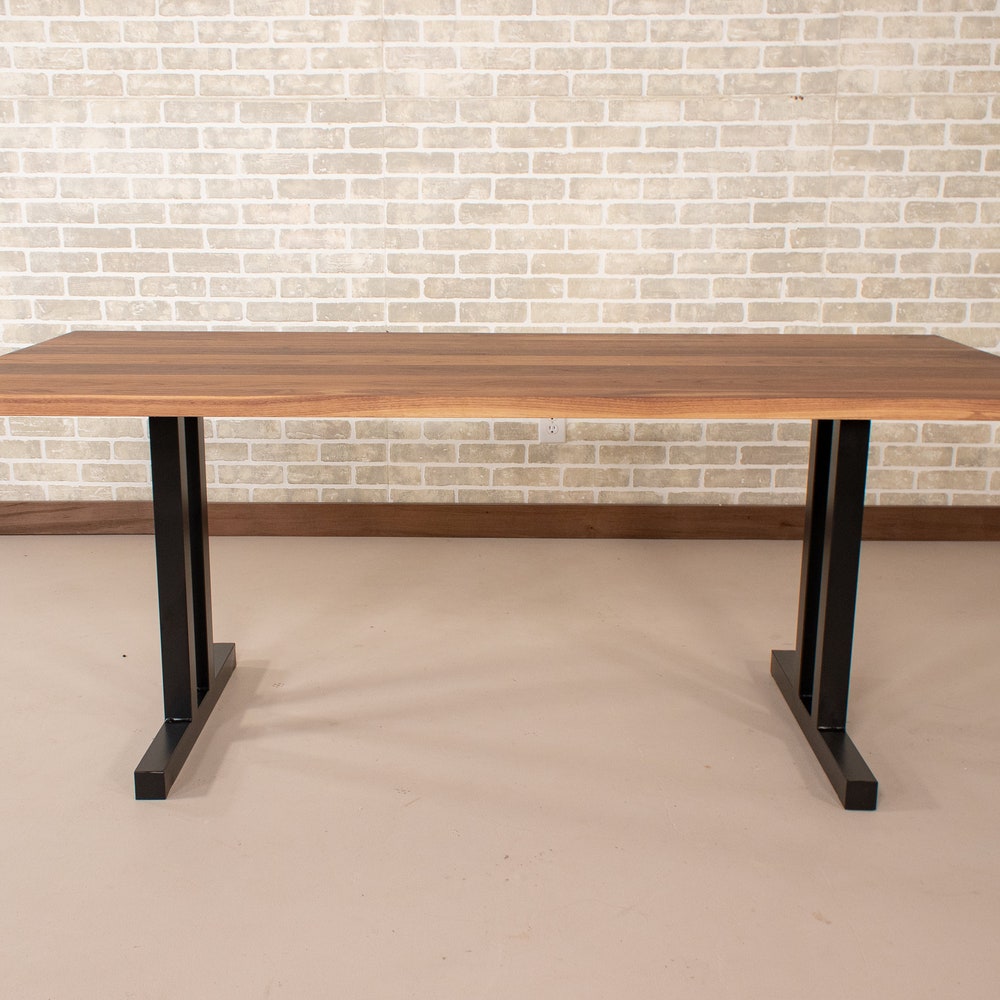 This modern kitchen table is an upgrade on a classic industrial table. With its solid walnut top and our steel Tuttle legs, the table has a tailored, architectural feel. We build every table to order so there are many ways to make this table perfect for you.