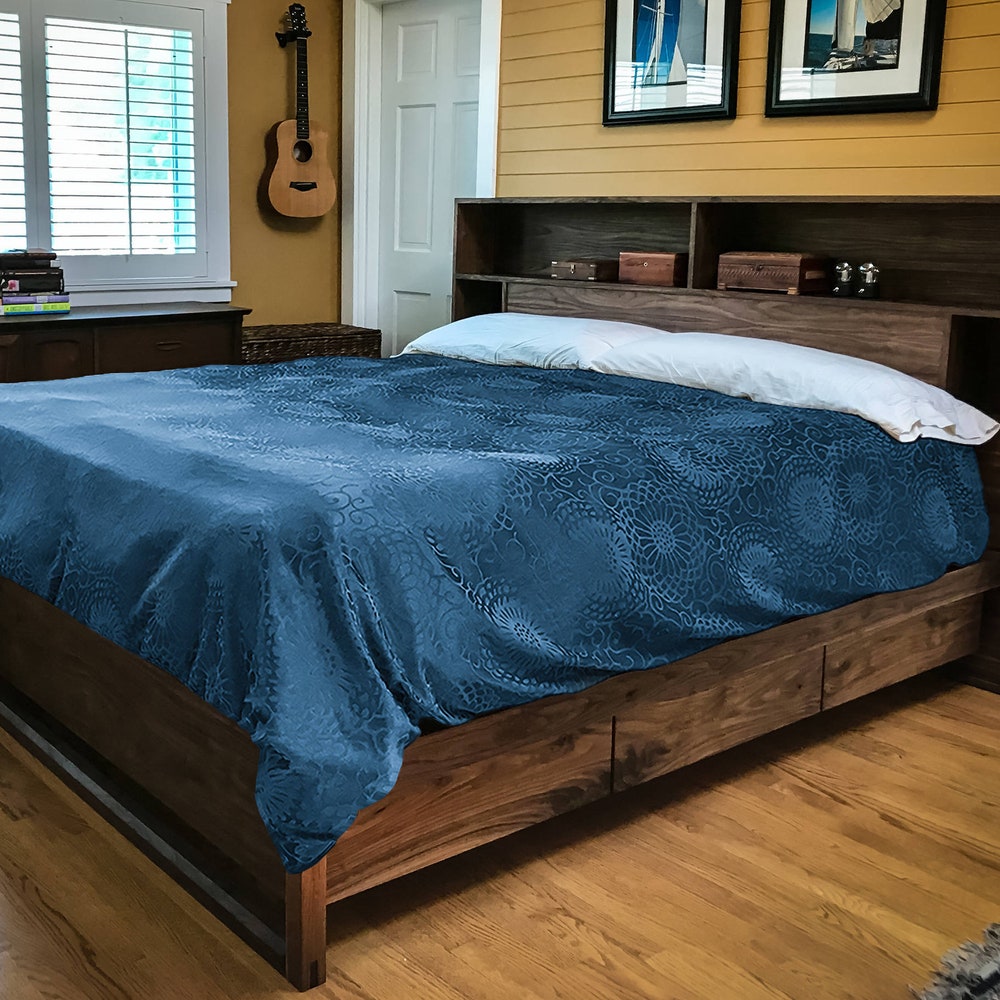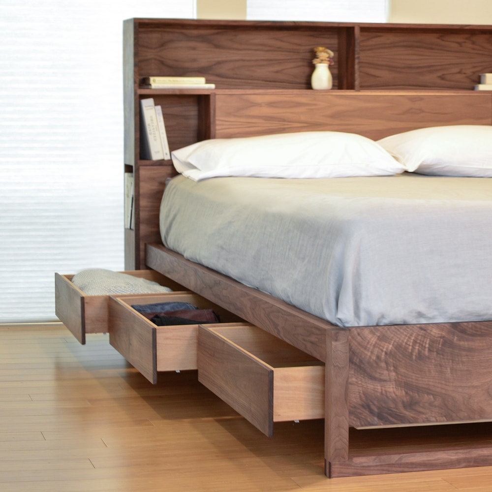 The Greenwood storage bed is equal parts efficiency and beauty. Handcrafted with non-toxic responsibly sourced materials in Seattle, WA to be a lifetime purchase. Designed around a solid hardwood storage headboard with 6 cubbies and a USB charging option, and a solid platform with 6 softclose drawers.