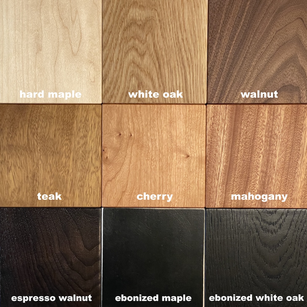 | Material | walnut, cherry, teak, mahogany, white oak, ebonized white oak, Espresso walnut, hard maple |