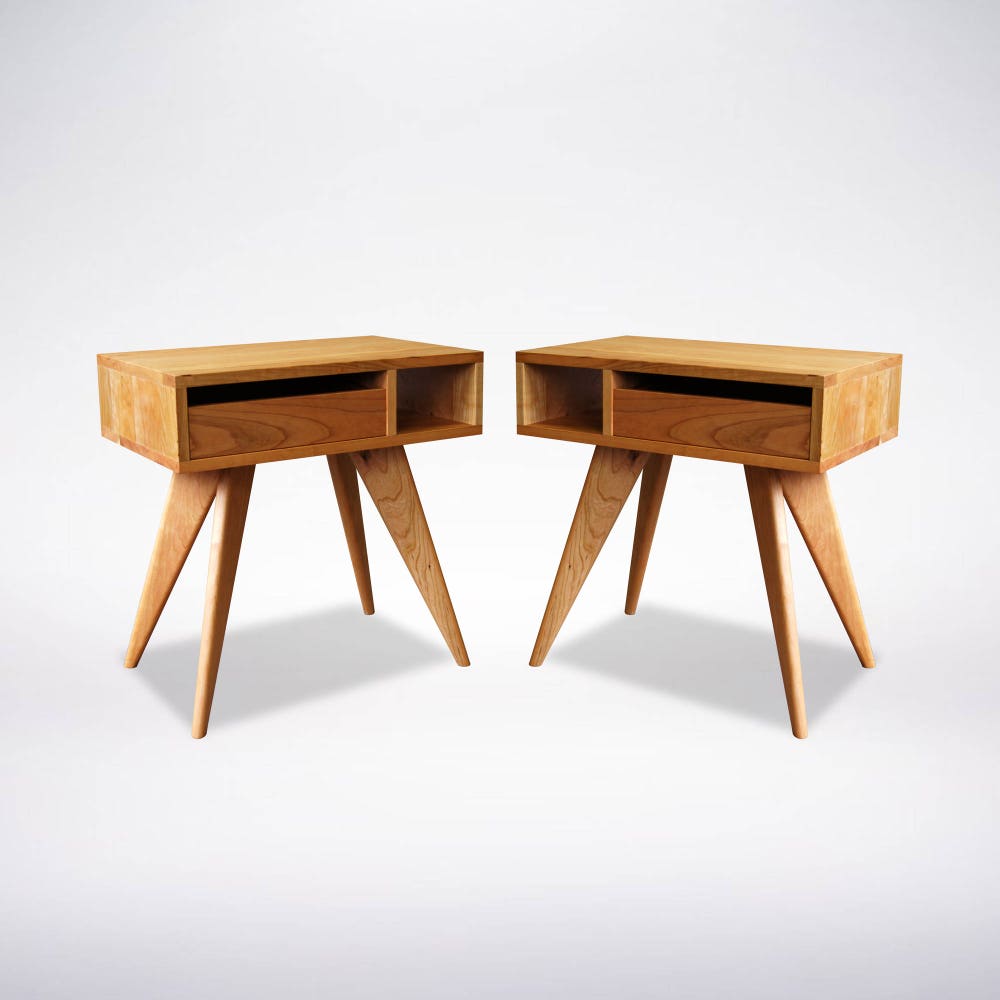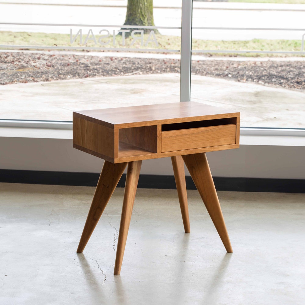 Apollo Side Table & Colorful Drawer Options, Handmade Wood Mid Century Modern – Oak, Cherry, Walnut or Maple, Retro Style, Bedroom Furniture