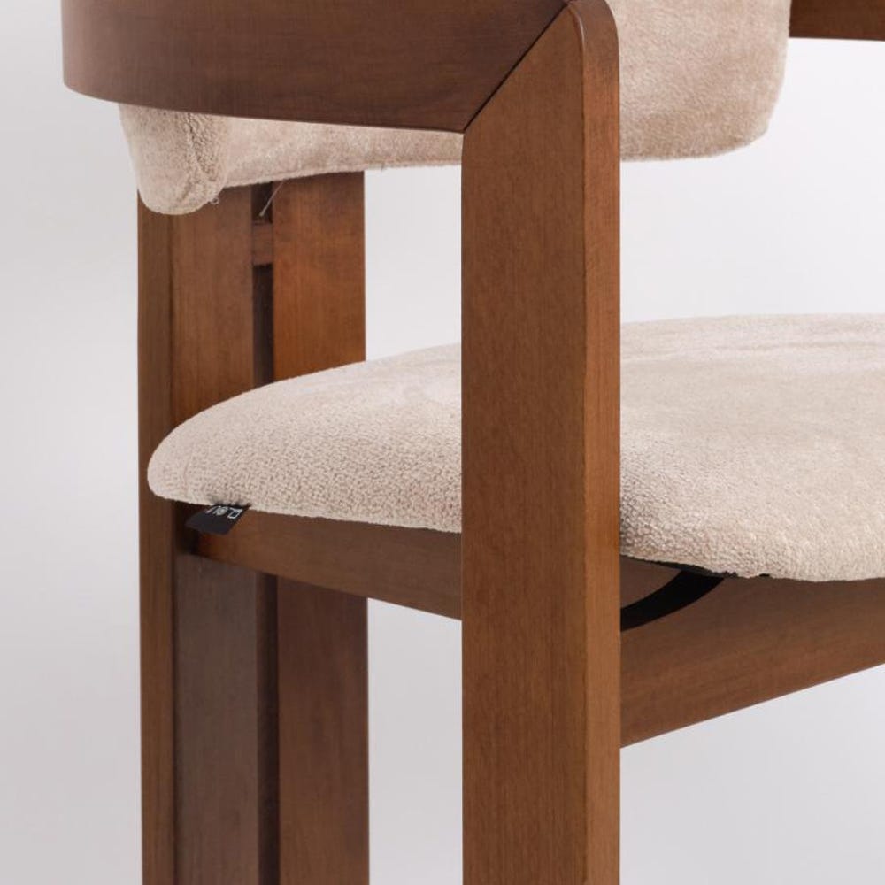 Raw material is hornbeam tree. Lacquered in walnut wood color. Fully customized fabric colors are available.