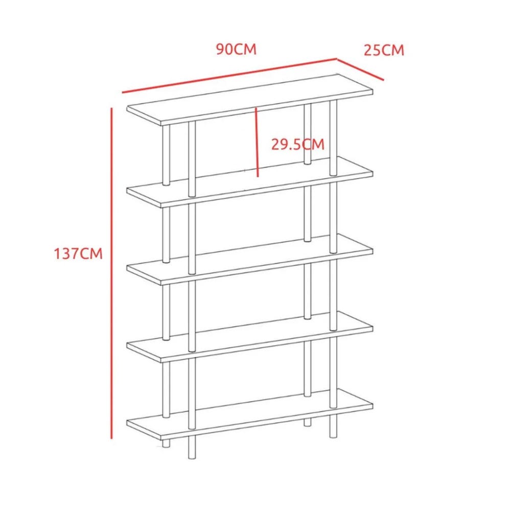 Ideal Dimensions: With a width of 90 cm, height of 137 cm, and depth of 25 cm, this bookshelf fits seamlessly into any room without taking up too much space.