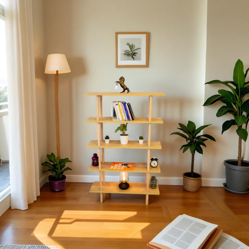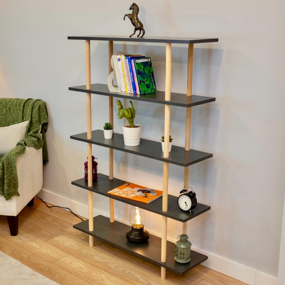 Spacious Storage: Five roomy shelves provide ample space to neatly organize and display books, decor, and essential items.