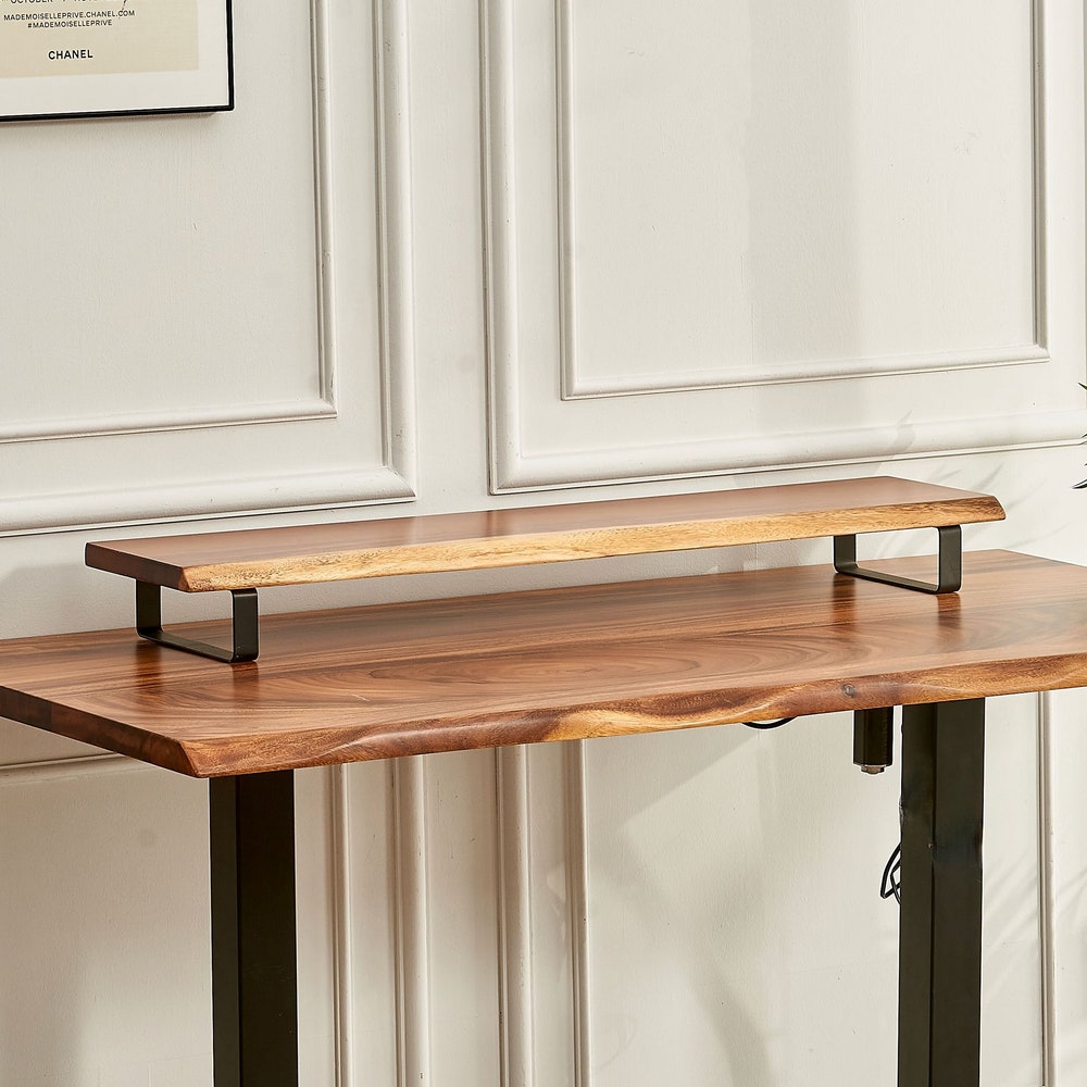 Made with 100% solid South American walnut (Samanea saman) and sleek, steel U shaped legs, we are excited to offer our newest product. Finished the same way we finish all of our tabletops, our monitor stand seamlessly fits in with all of our desks. Add additional storage, ergonomics and comfort to your work space.