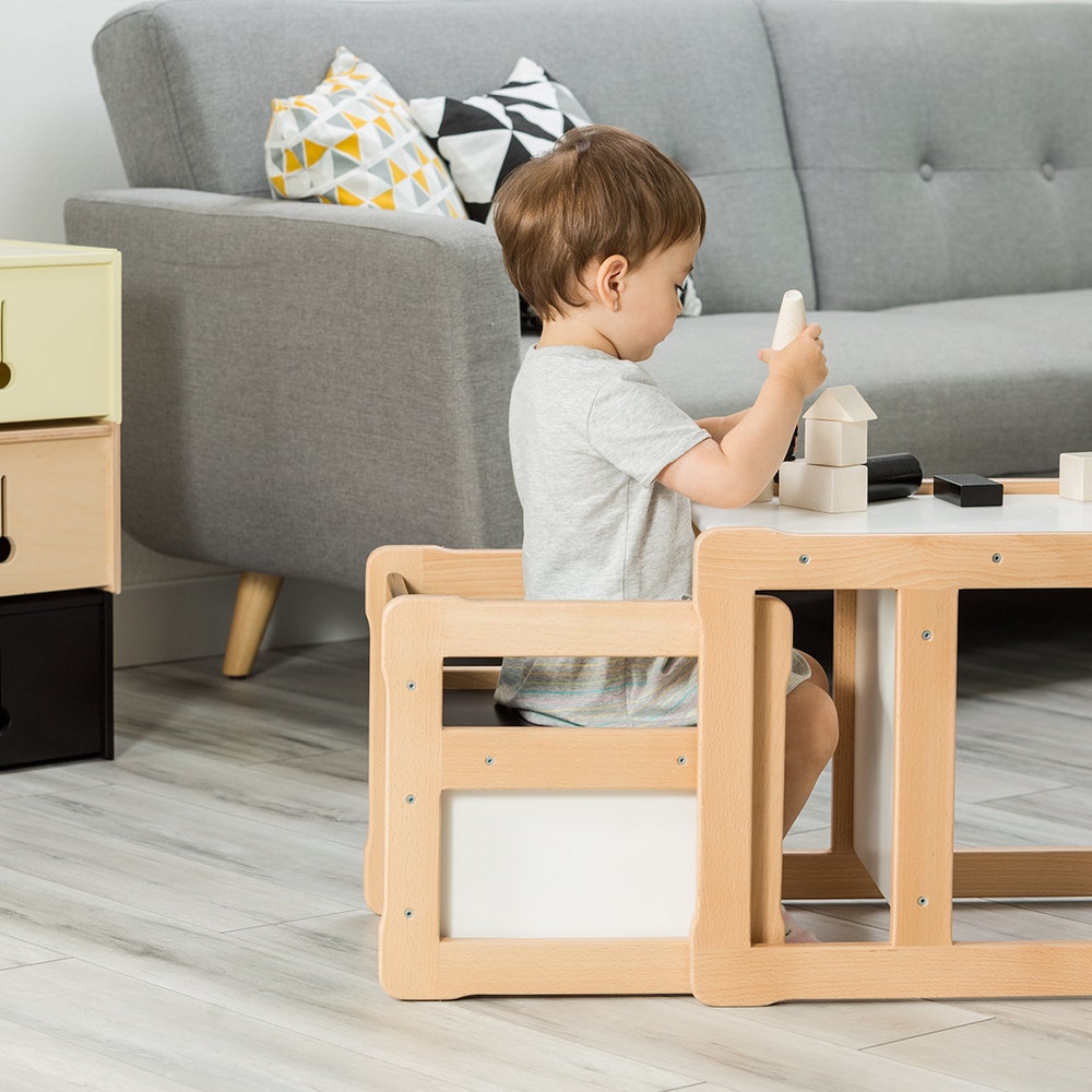 Montessori based Multifunctional chair and small box set, certified solid wood and plywood Baby registry item Gift for kids