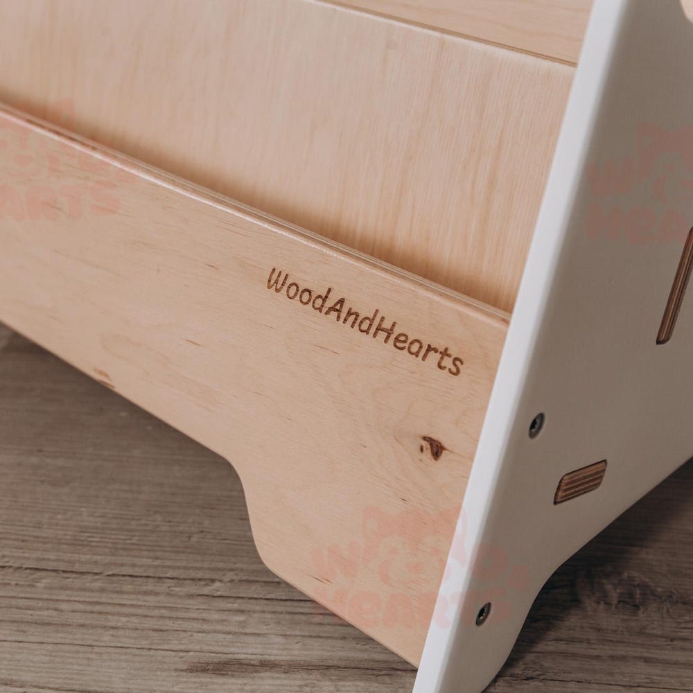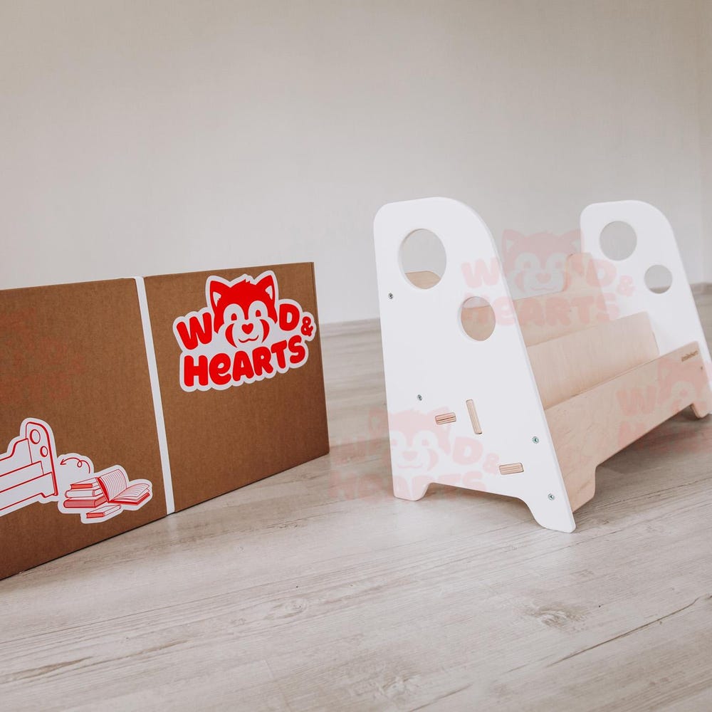 This listing offers one Floor Bookcase “Adam” in White + Natural Wood color. The front-facing bookcase has two shelves and convenient side panels with handles. Guided by Montessori principles, our furniture helps children organize their beloved books and educational materials. This stylish bookshelf not only promotes active reading but also fosters their ability to make […]