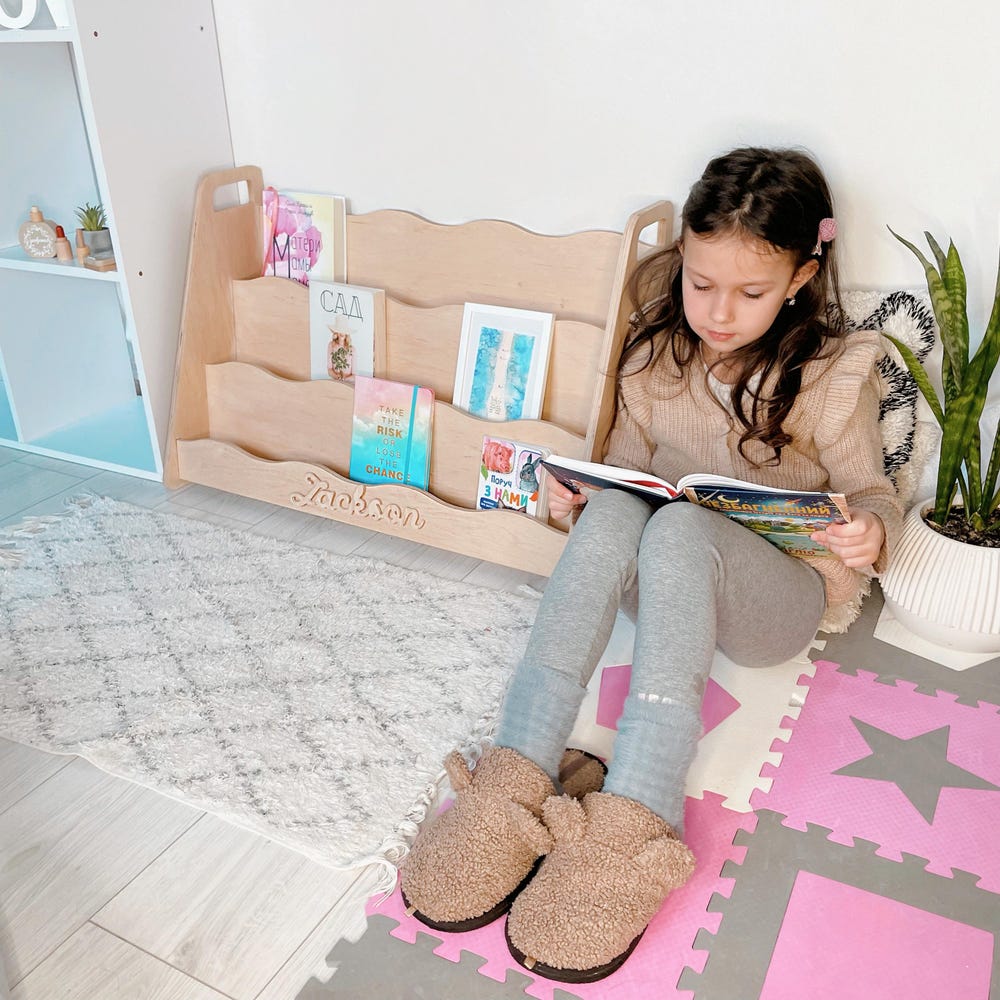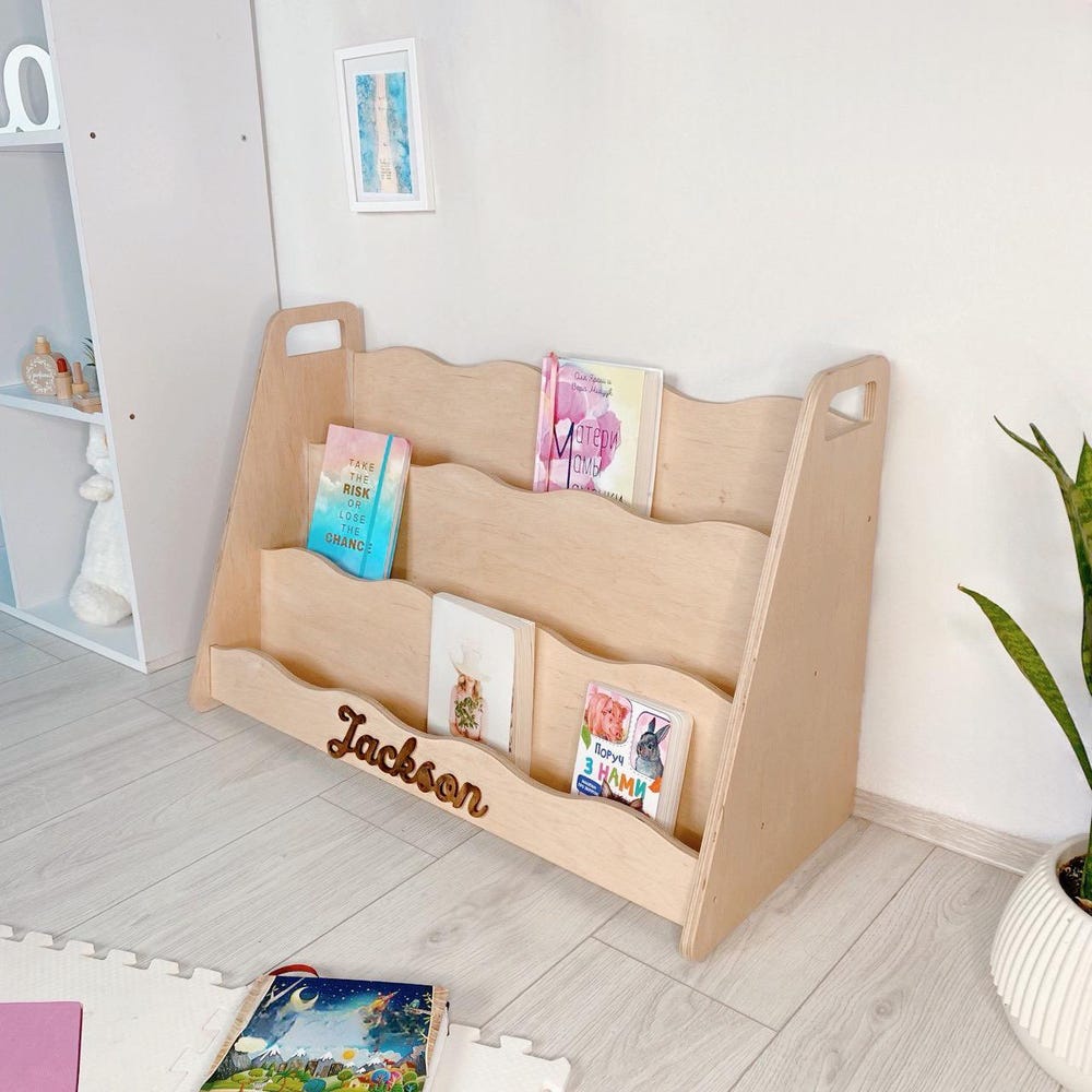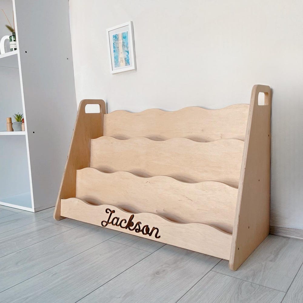 Montessori Bookshelf for Kids Room – Natural Wooden Children’s Bookcase – Nursery Storage Furniture – Waldorf GIFT FOR TODDLERS