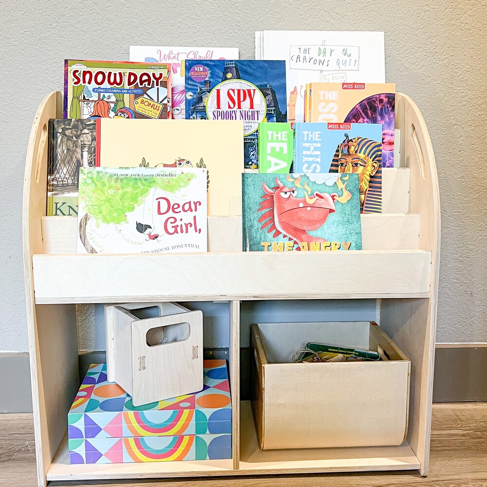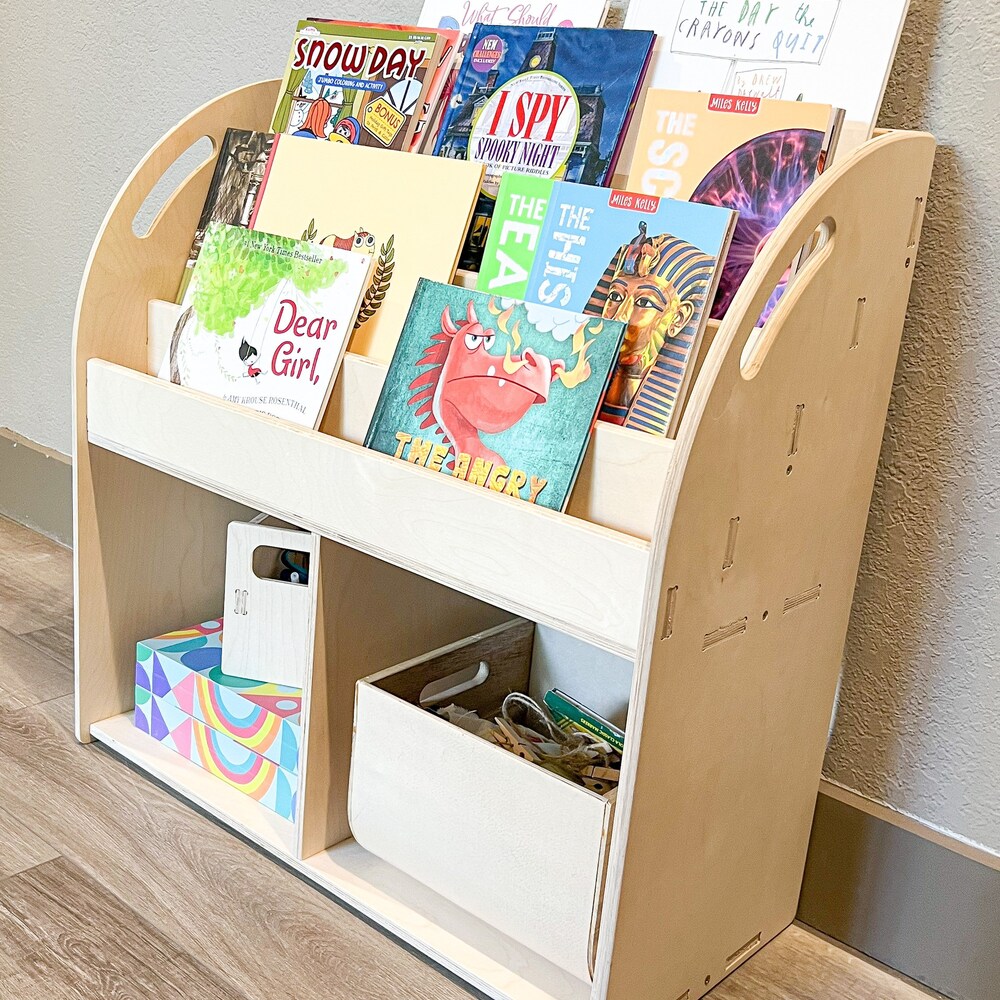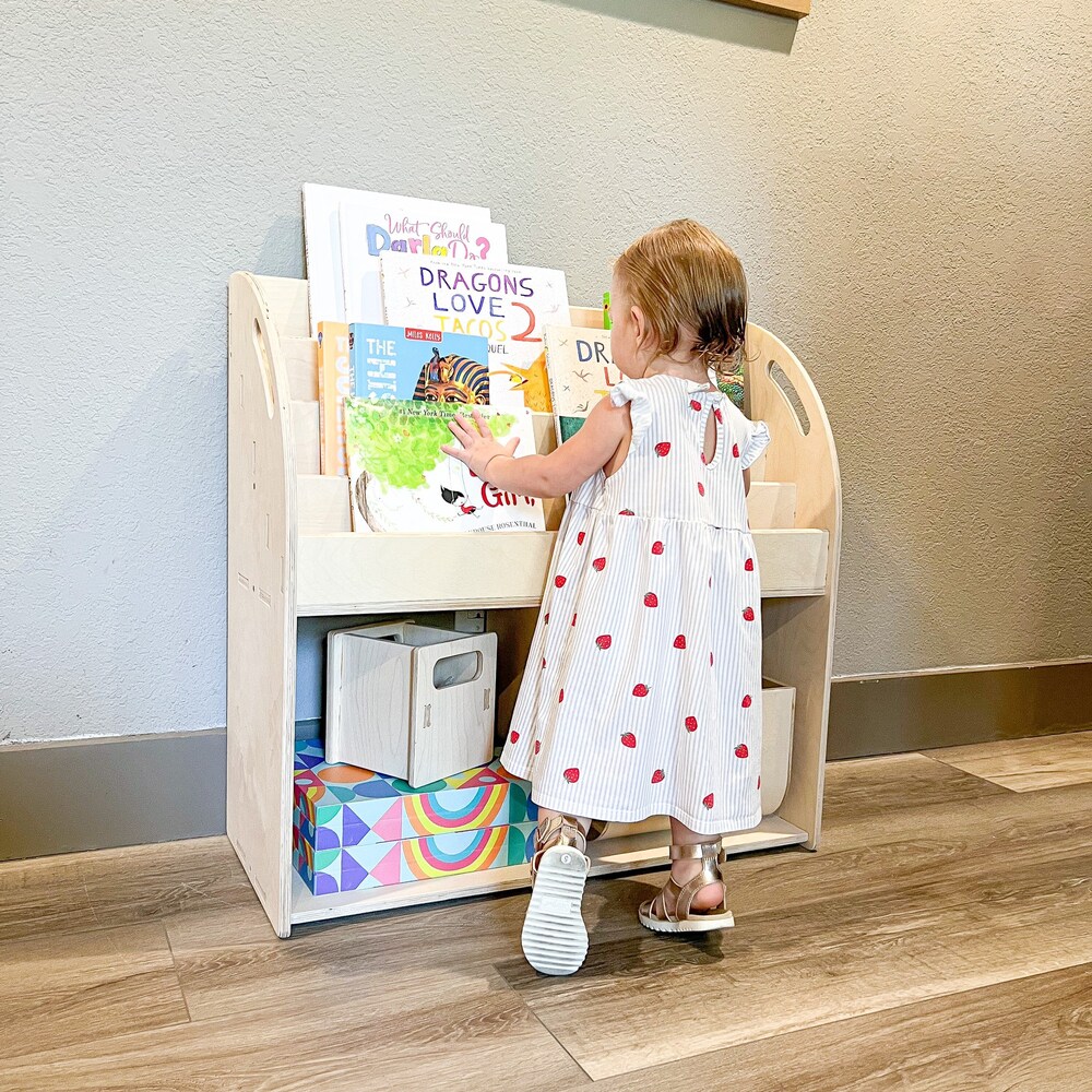 Montessori Bookshelf with Storage Cubbies Toddler Bookcase Montessori Wooden Furniture Nursery Gift Wooden Bookshelf LARISSA