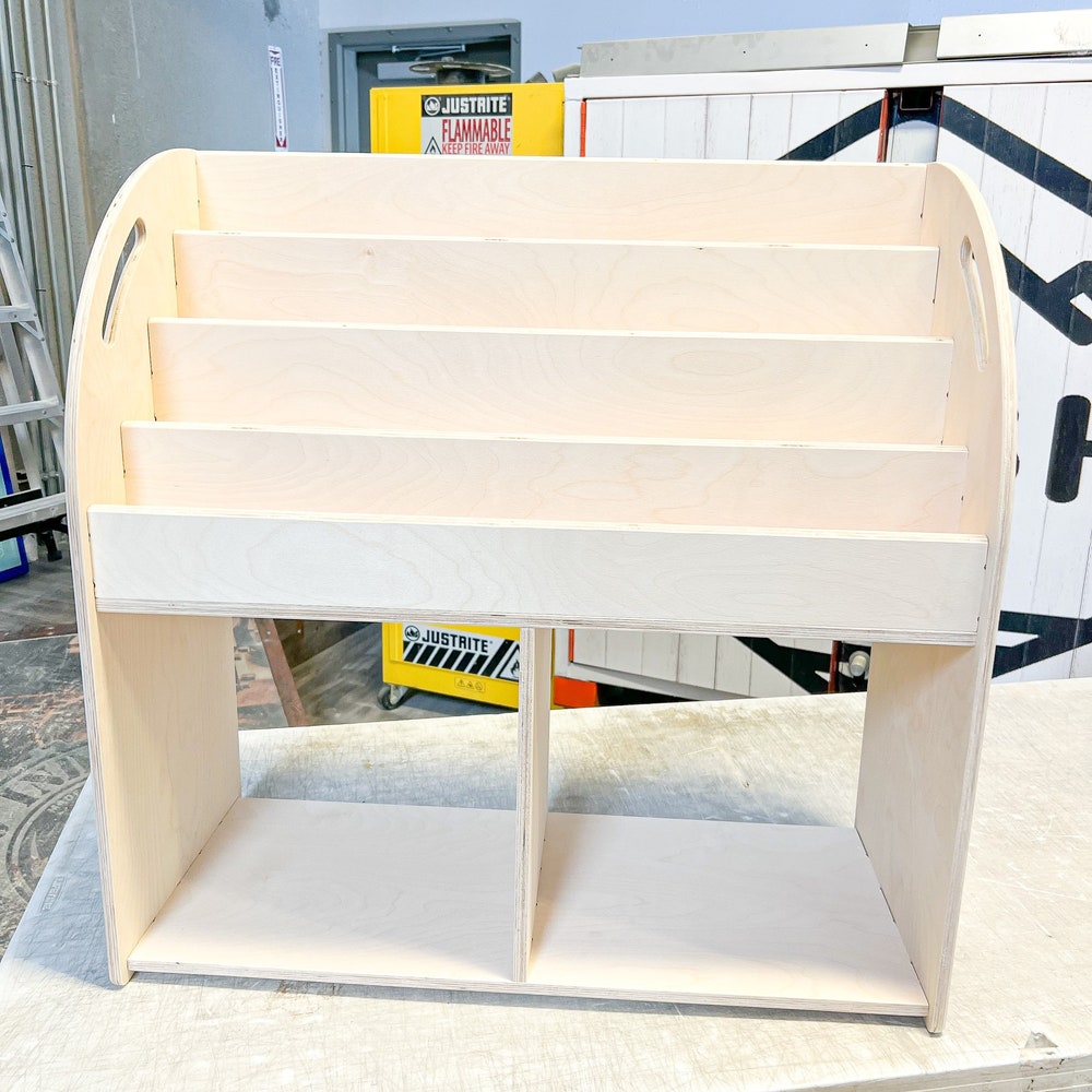 Medium 4 Shelf Montessori Bookshelf with Cubby Storage (compatible with IKEA storage products) ★ Very strong, solid design | Made from 1/2″ USA Baltic Birch plywood. ★ This product comes pre-sanded. ★ The wood is untreated and beautiful left as-is, but can also be stained, painted or sealed should you chose to do so (see […]