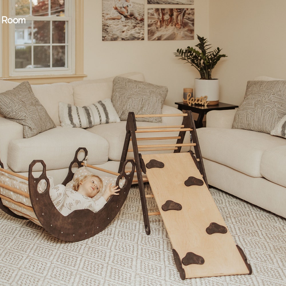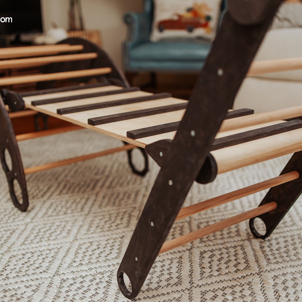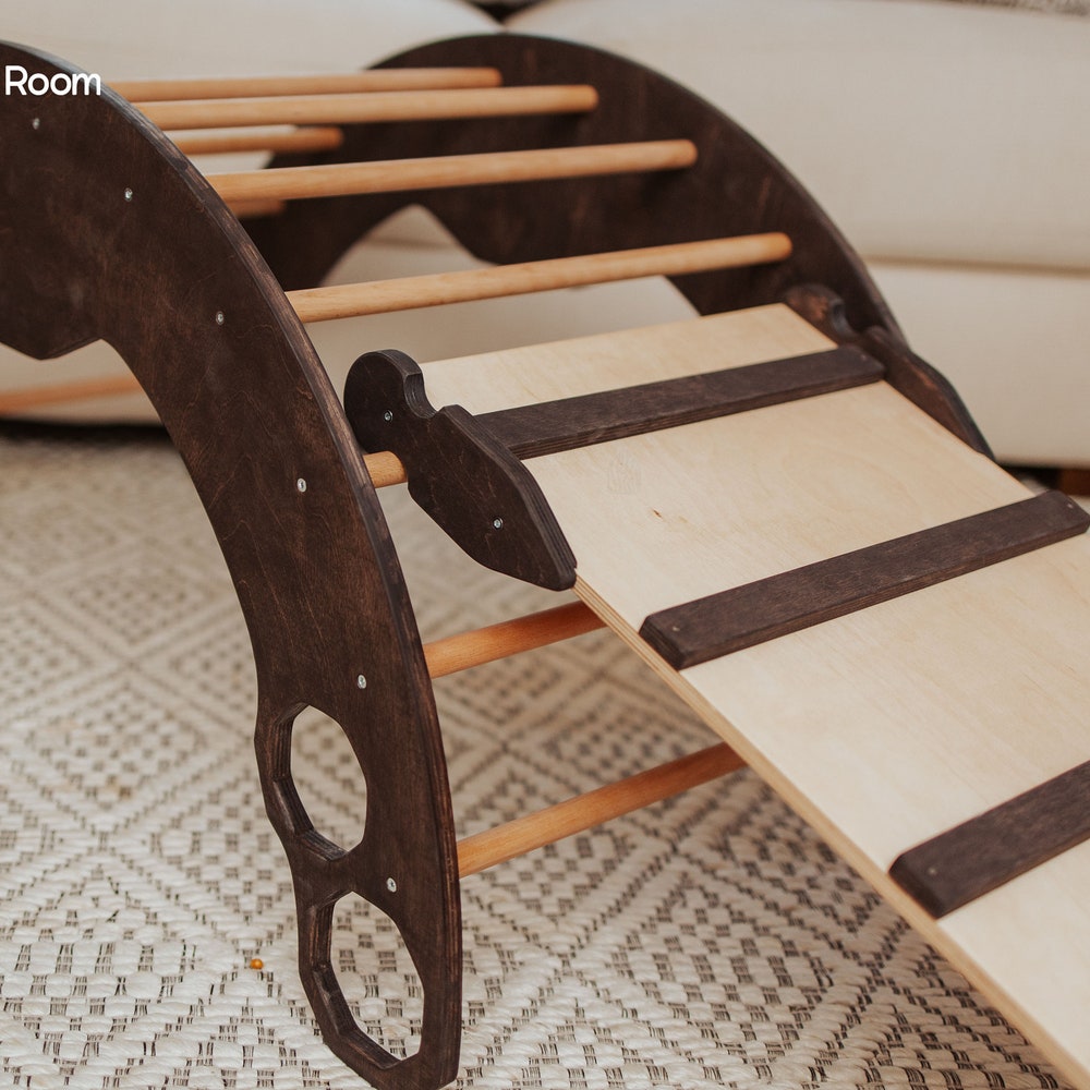 Montessori climber – Set of 3 items – Dark wooden gym, Indoor playground, Toddler furniture, Kletterdreieck, Baby balance board
