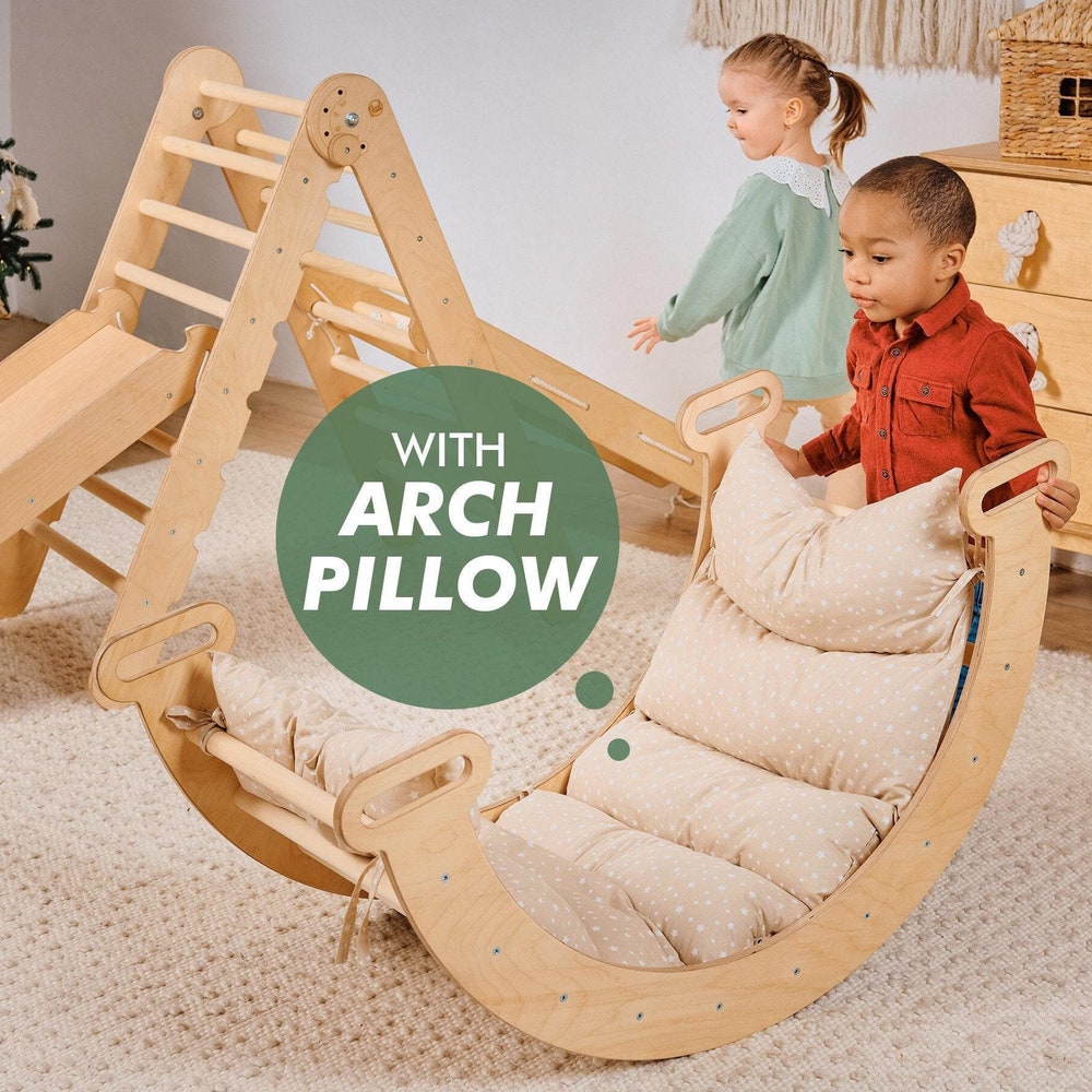 Montessori climbing arch with pillow, Wooden Montessori arch climber, Montessori gym, Toddler climber Climbing arch pillow Arch cushion
