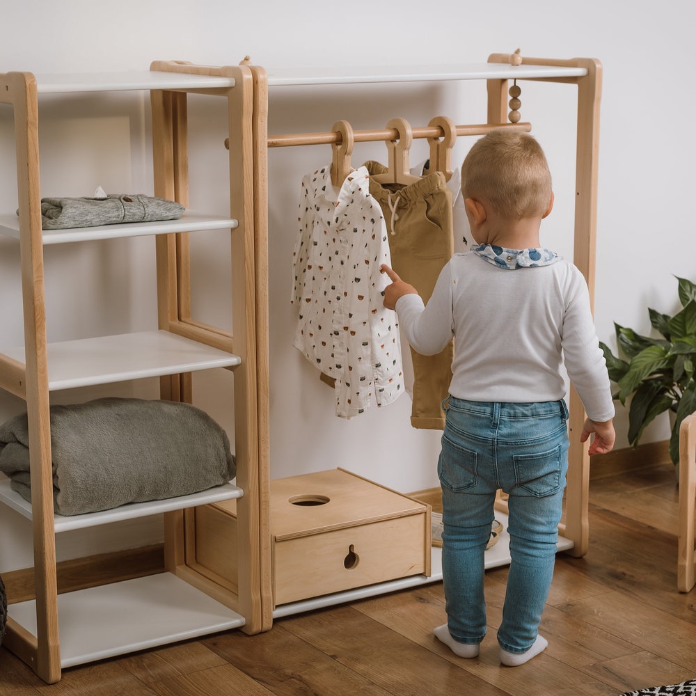 Montessori Clothing Rack And Shelf KIDS CLOTHING RACK Type B with shelf, Wood Clothes Rack, , Kids Wardrobe Gift for kids