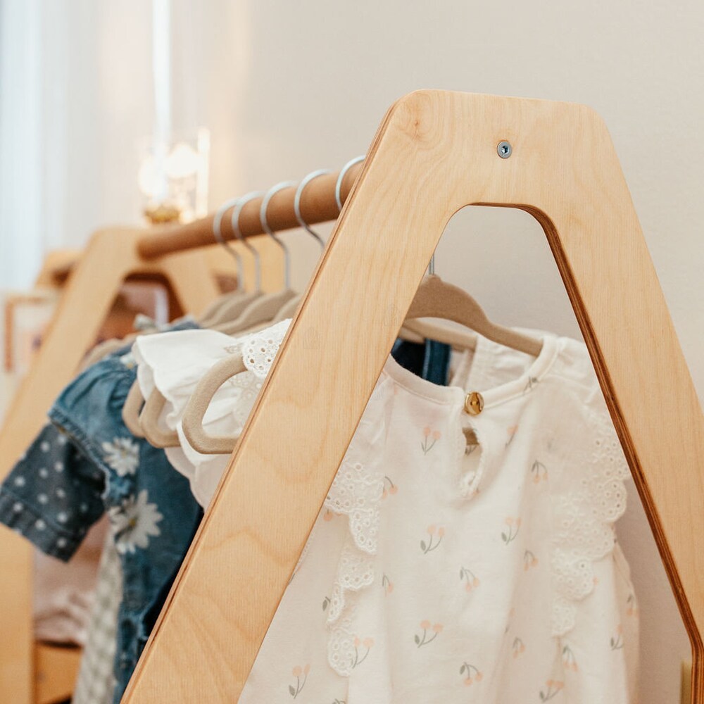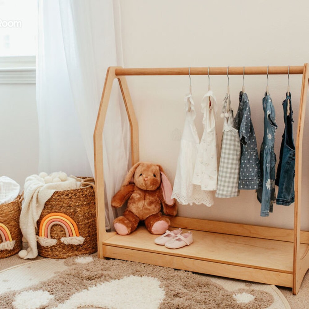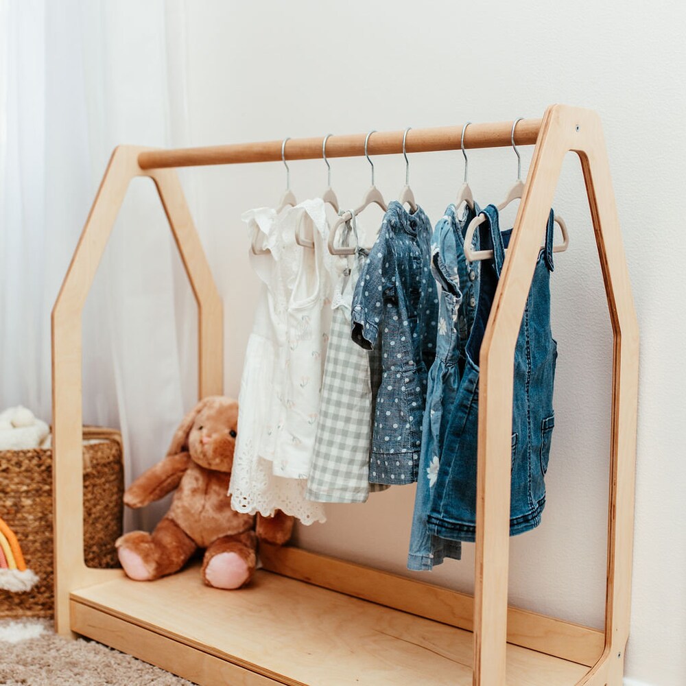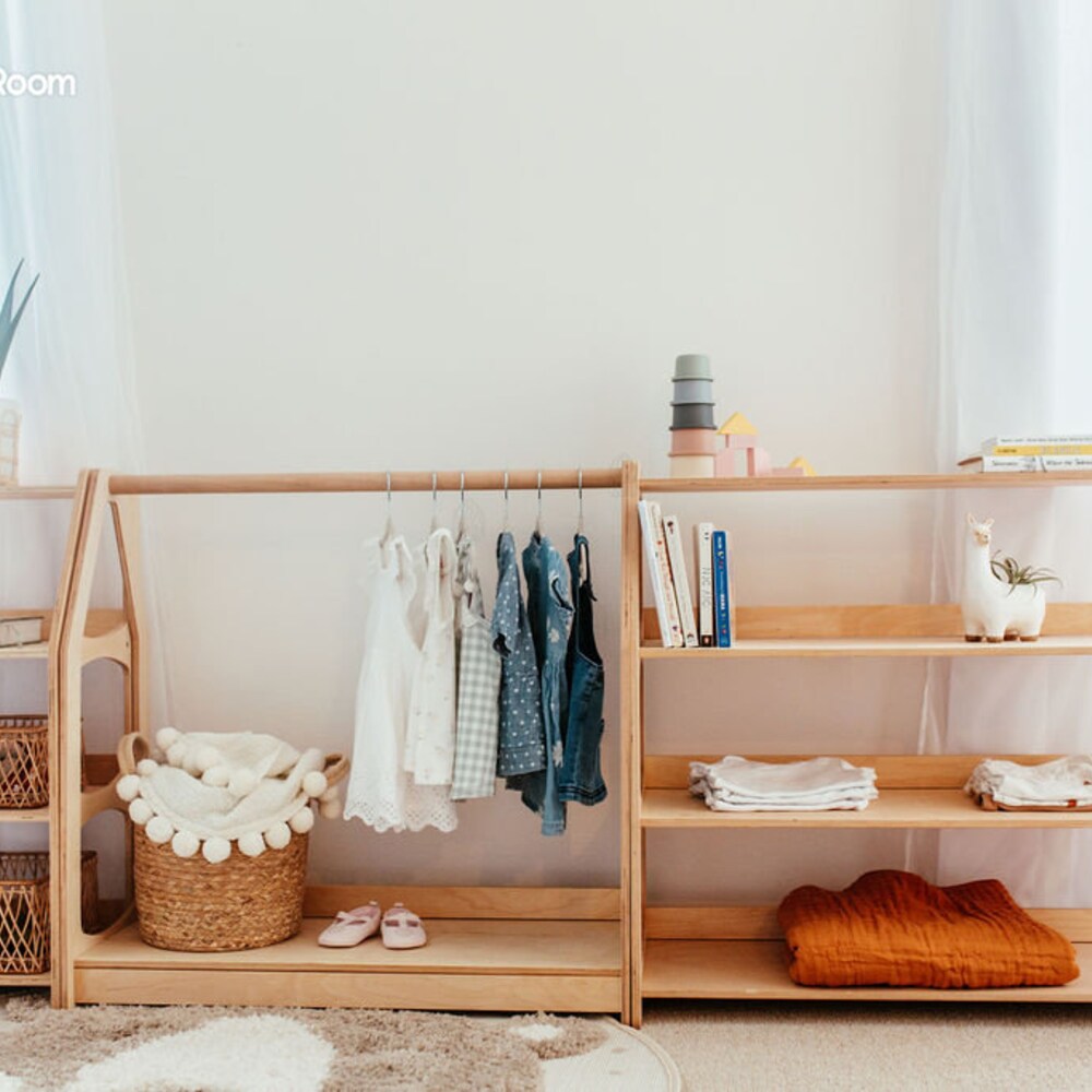 Montessori Clothing Rack with Shelf, Toddler furniture, Nursery storage, Montessori wardrobe, Kindergarderobe, Dress up rack, Kids closet