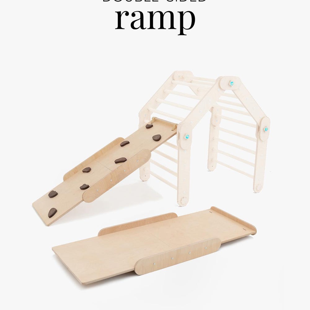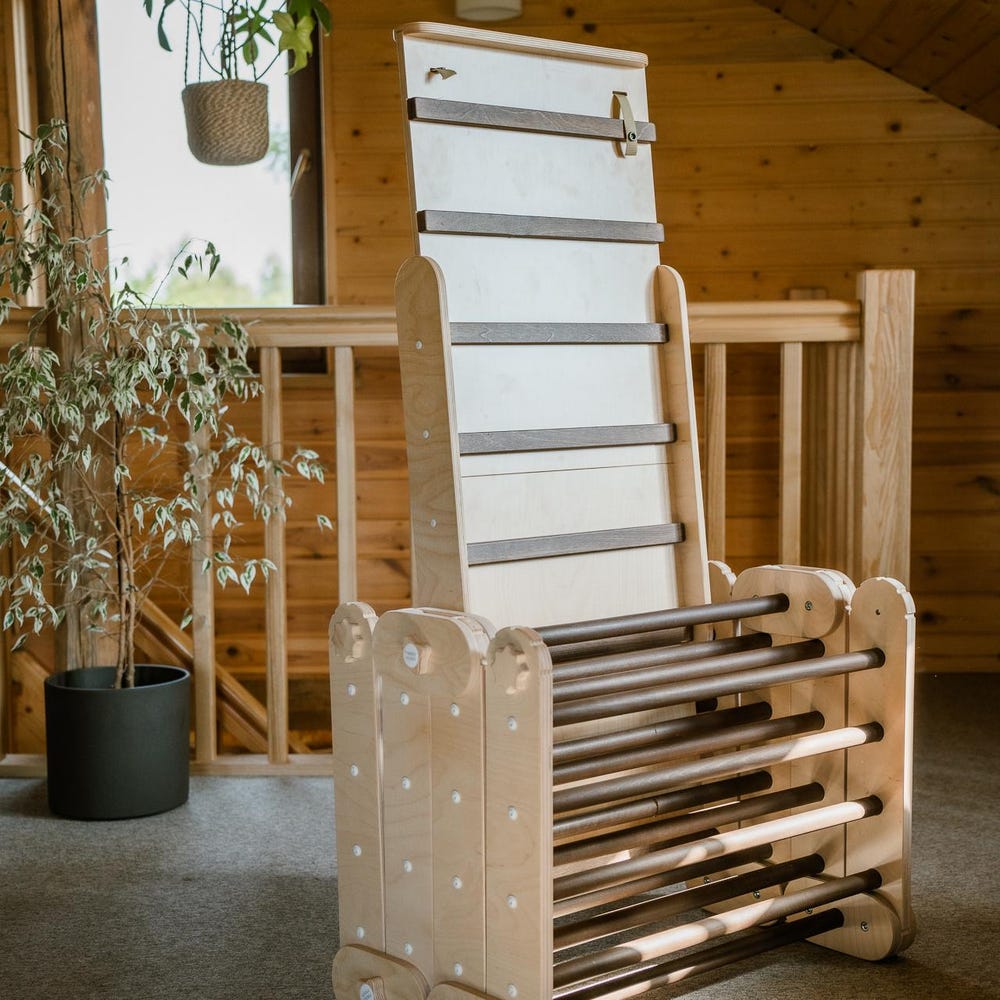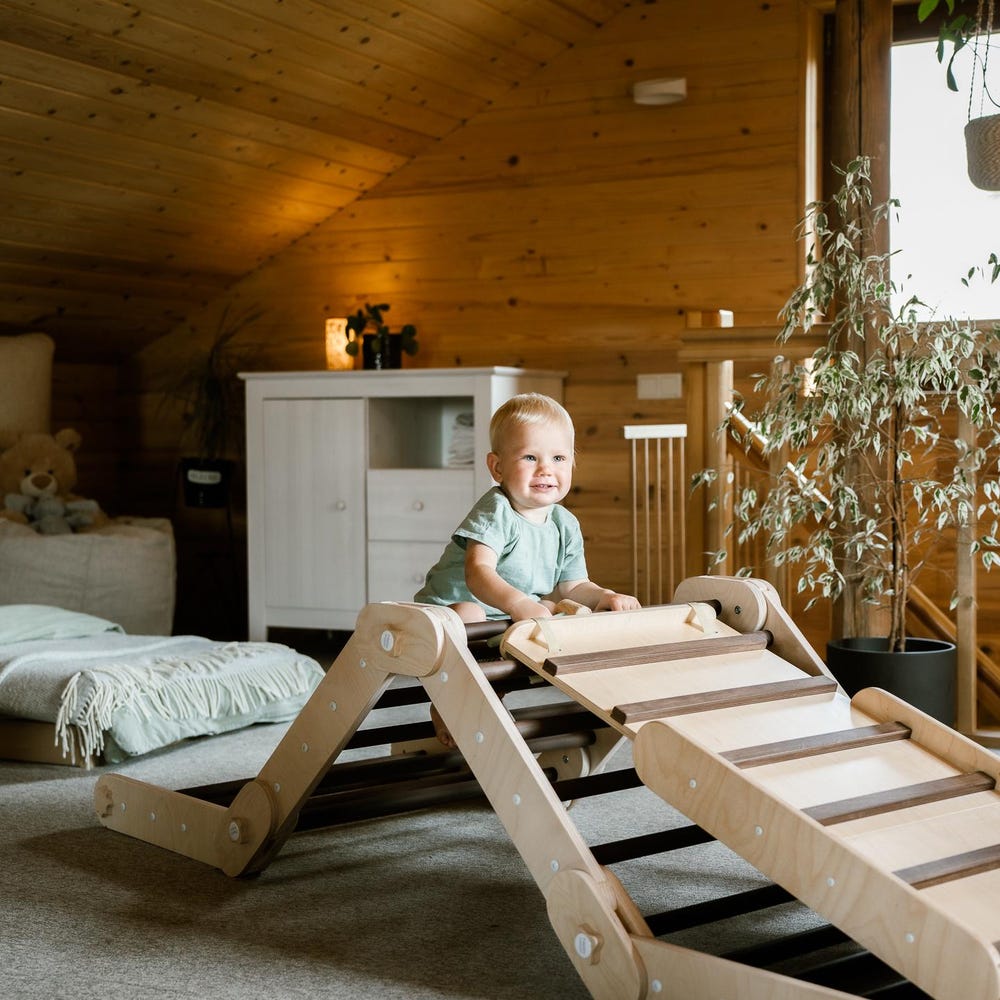 Montessori darkwood climber with ramp, Transformable Triangle Pikler Gym for Kids – Fun & Quality Home Gymnastics PlaySet