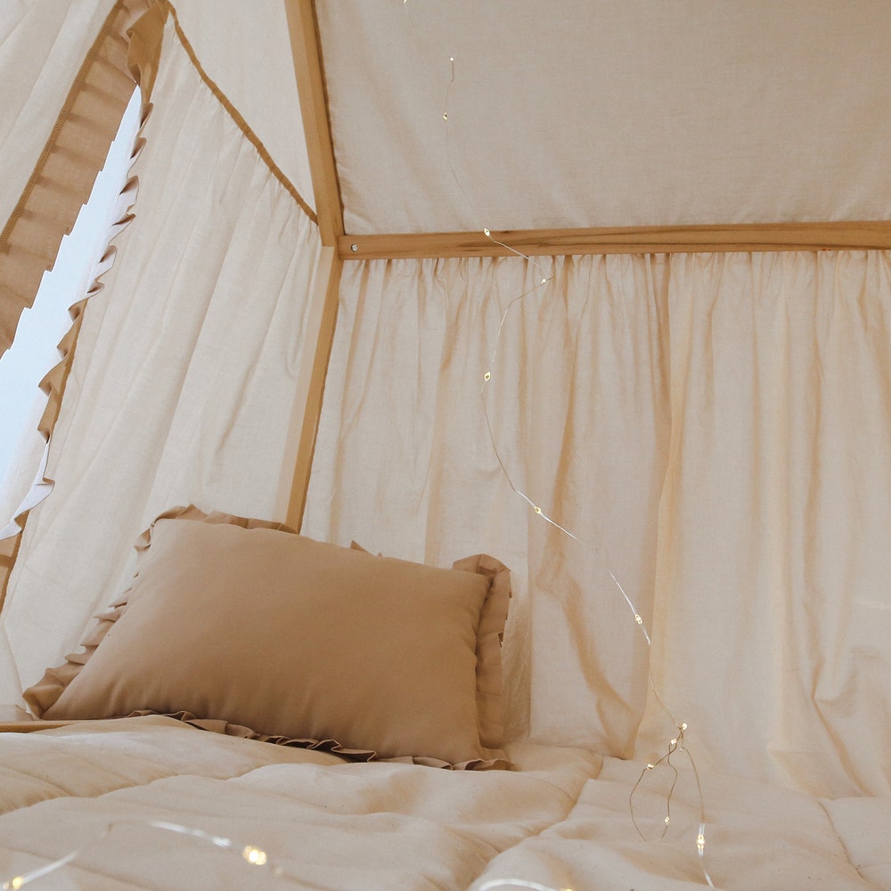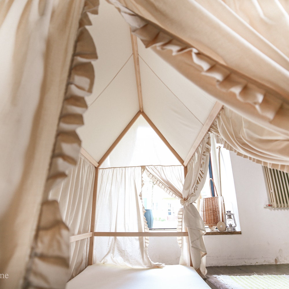 ✔️CANOPY floor BED COMES WITH TENT COVER . Linden tree and 100% premium quality cotton fabric